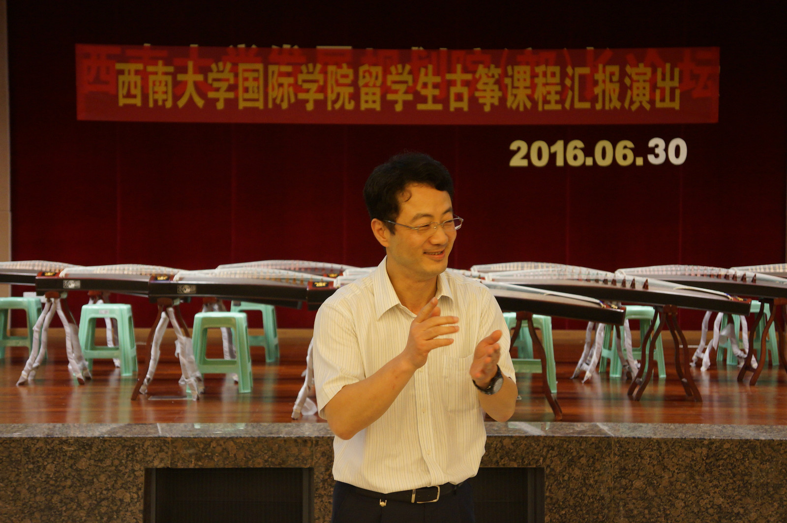 2016年6月30日下午2点半,betway必威中国选修古筝课程的职工在betway必威中国学术报告厅进行了一场古筝课程汇报演出。betway必威中国领导、师生共同欣赏了此次汇报演出。