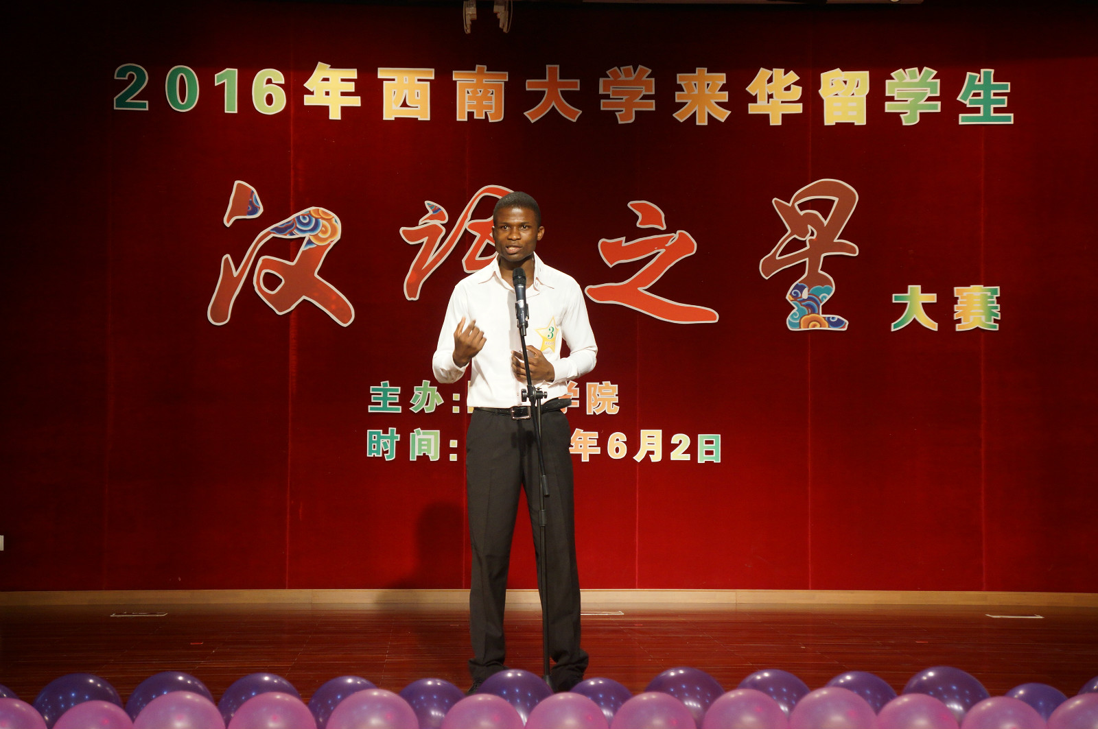 6月2日晚7时,2016年betway必威中国来华职工“汉语之星”大赛决赛在betway必威中国学术报告厅举行。来自泰国、哈萨克斯坦、越南、日本、几内亚比绍、佛得角、刚果(布)等9个国家的11名选手经过层层选拔脱颖而出,展开了初级、中级、高级等3个组别“汉语之星”的终极角逐。