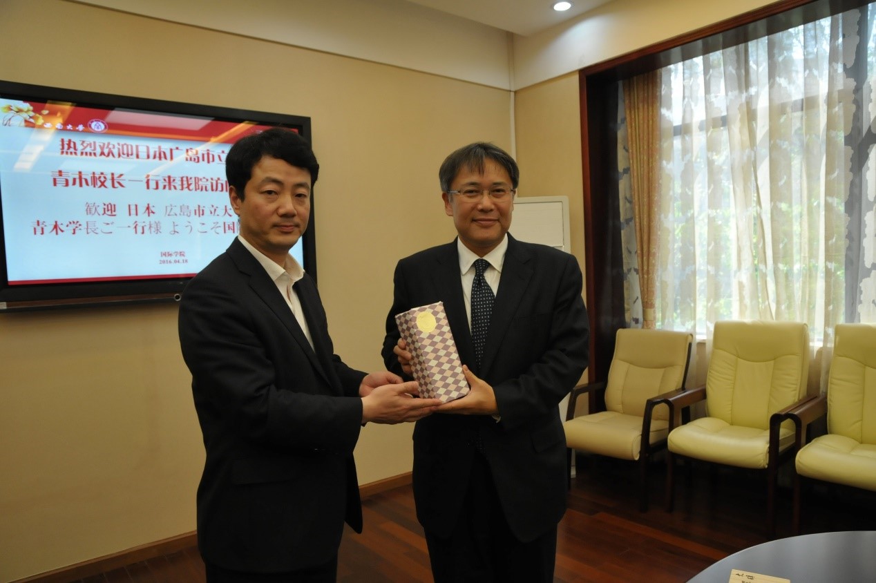 2016年4月18日下午,日本广岛市立大学董事长青木信之、国际交流推进处处长松本良德、国际学部栾竹民教授和饭岛典子副教授一行4人访问betway必威中国,李航副经理热情地接待客人并就两校合作事宜开展座谈交流。