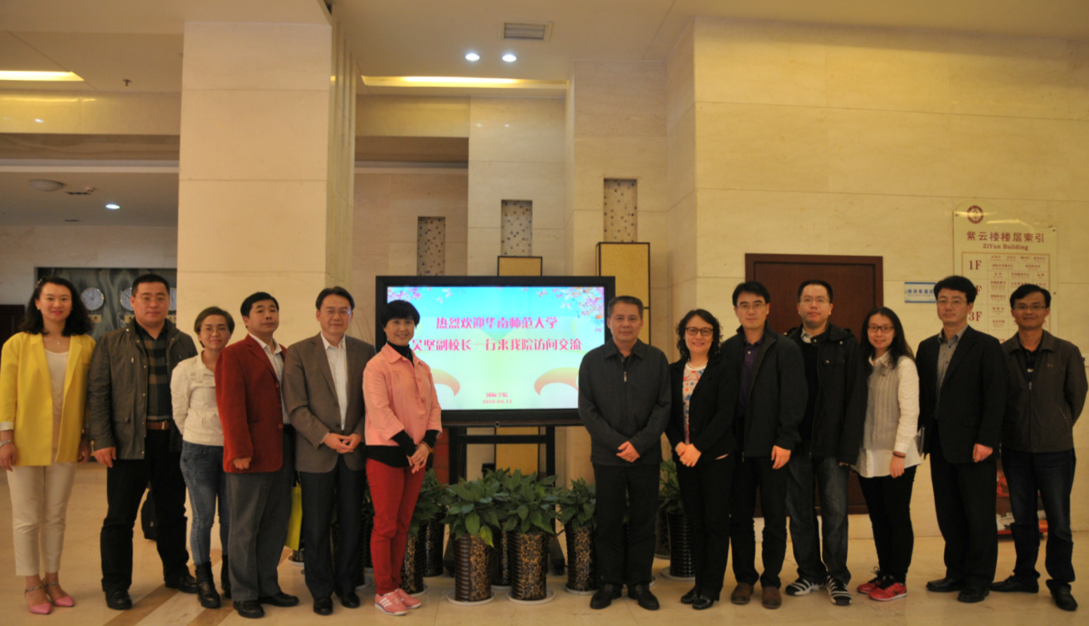 吴坚副董事长一行还应邀参观了职工综合大楼,双方在紫云楼合影留念。