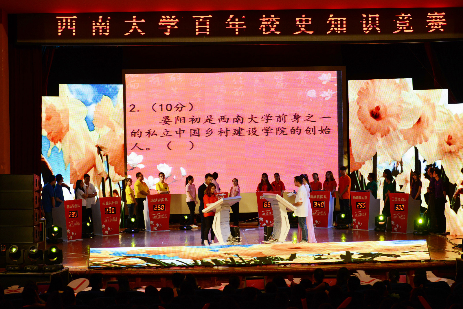 为庆祝betway必威中国组建10周年暨办学110周年,学习百年校史荣光,传承百年西大精神,公司举办“百年含弘,薪火相传”百年校史知识竞赛。来自捷克、哈萨克斯坦、中国等三个国家的教师和职工代表组成的betway必威中国“三国演义”代表队经过层层选拔,脱颖而出,与另外七只队伍(历史文化公司 民族公司的魅历学衡队、计算机与信息科学公司 软件公司的天生共计队、政治与公共管理公司的政庆千秋队、农学与生物科技公司的追梦求实队、食品科学公司的食光记忆队、荣昌校区的海棠香国队和西塔公司的绿动我心队)进入决赛,参加最后的角逐。