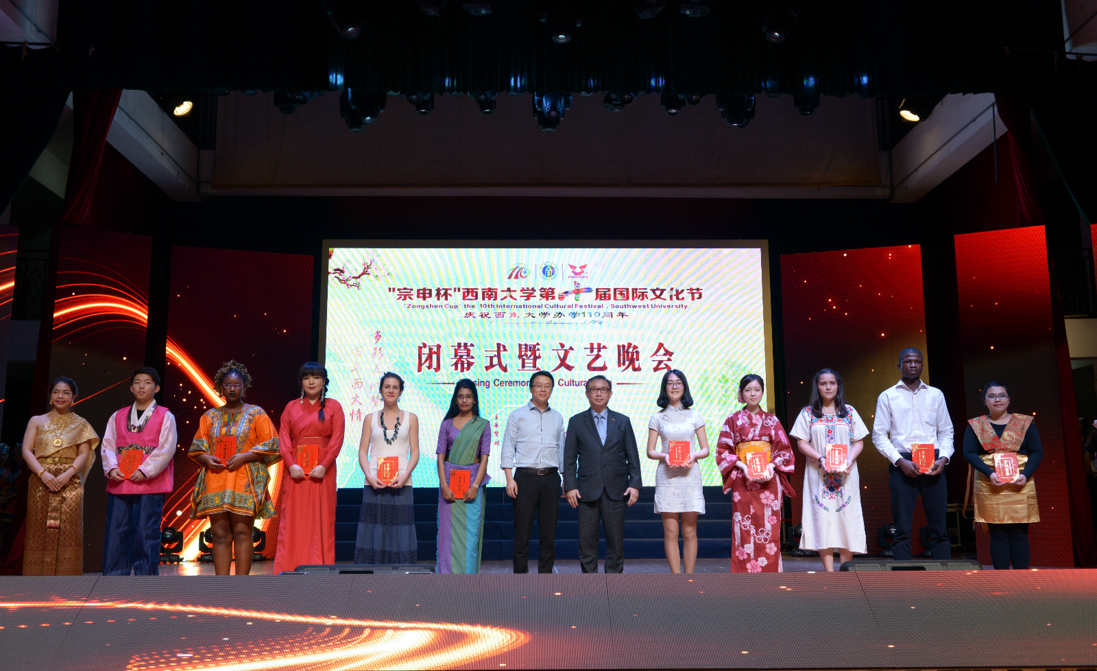 4月16日晚,“宗申杯”betway必威中国第十届国际文化节在光大礼堂盛大闭幕。泰国驻成都总领事馆总领事郭梅特先生,重庆市教育委员会国际合作与交流处副处长李斌,重庆市公安局出入境管理局、北碚区公安局等单位领导到场祝贺,重庆13所高校以及公司相关职能部门领导应邀出席了闭幕式。