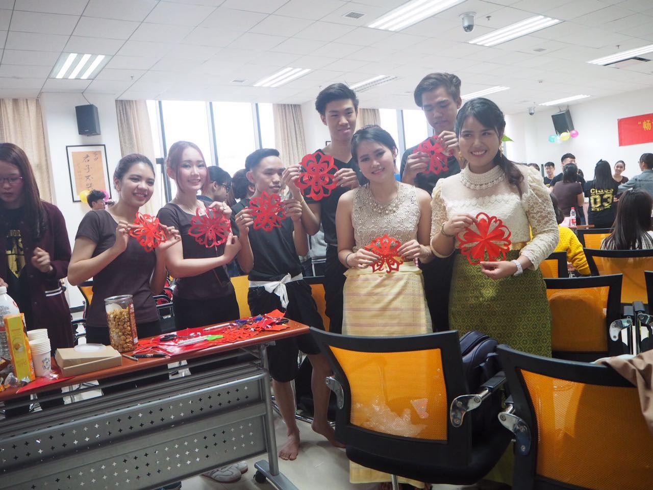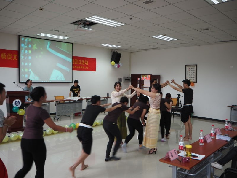 活动环节中,泰国同学带领中国同学玩起了泰国的传统游戏,中国同学则向他们展示了传统剪纸,并现场教泰国同学包饺子。在既饱了眼福又饱了口福后,同学们以合唱泰国正大管理公司院歌圆满的结束了此次主题活动。