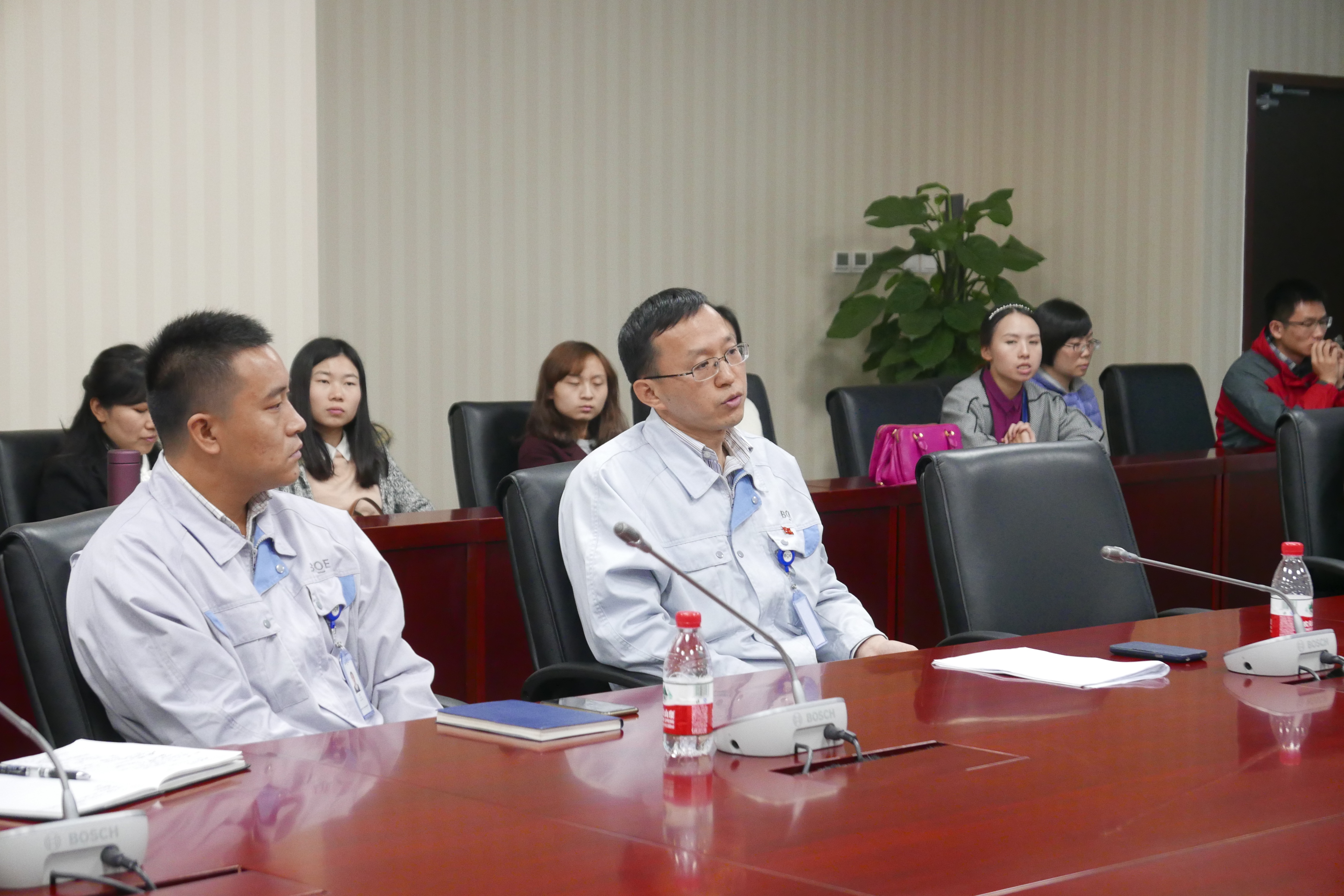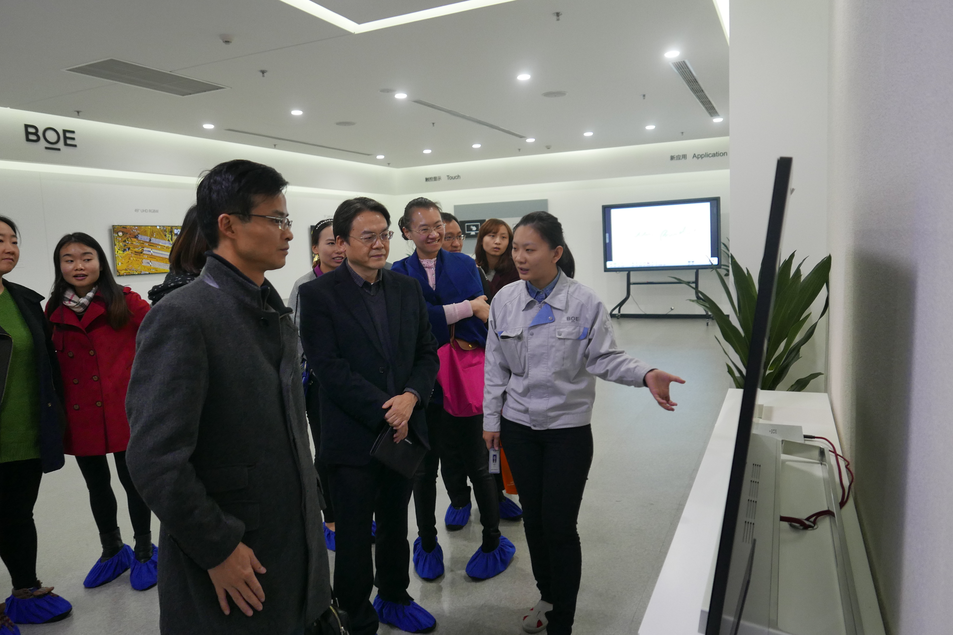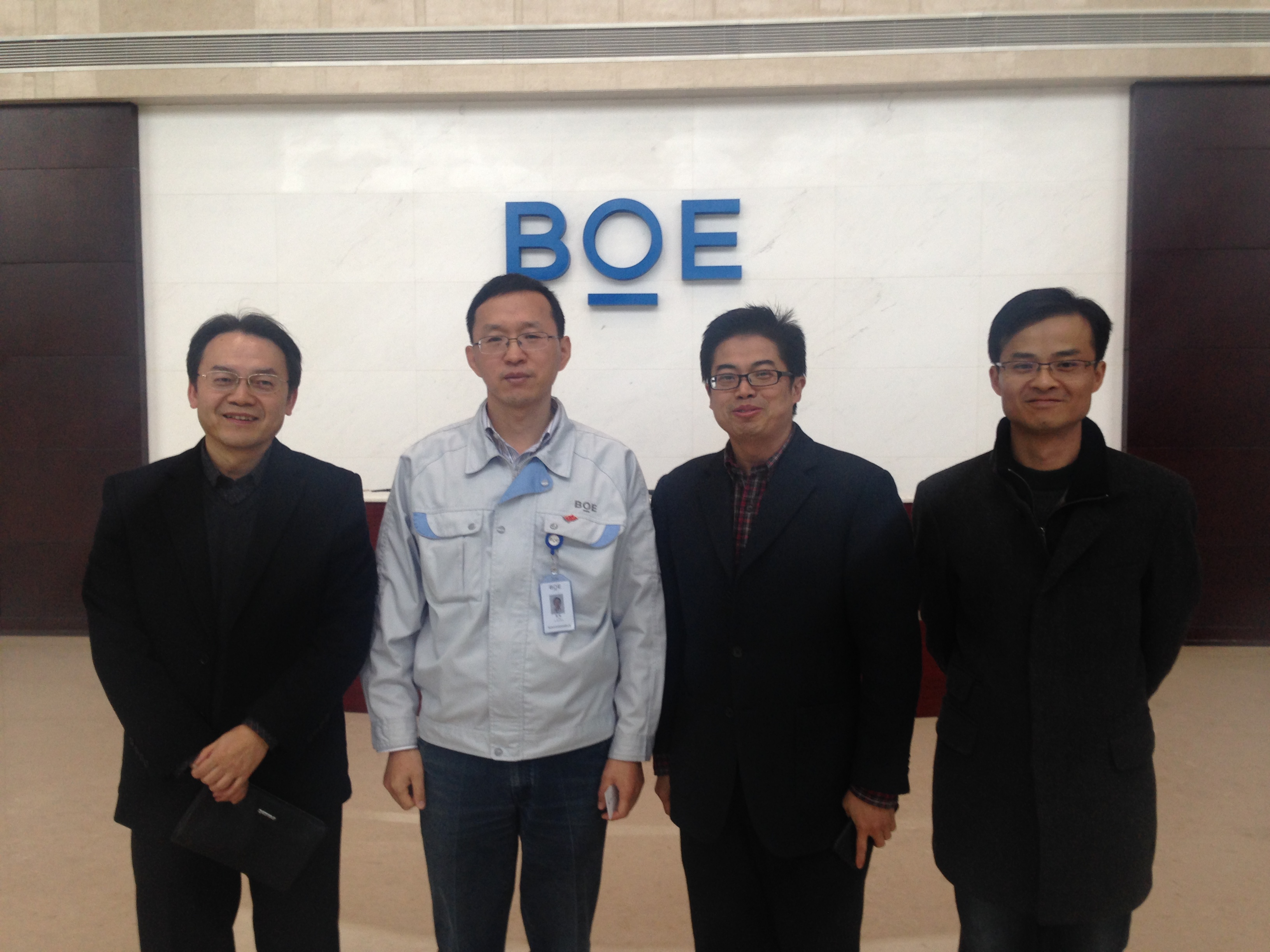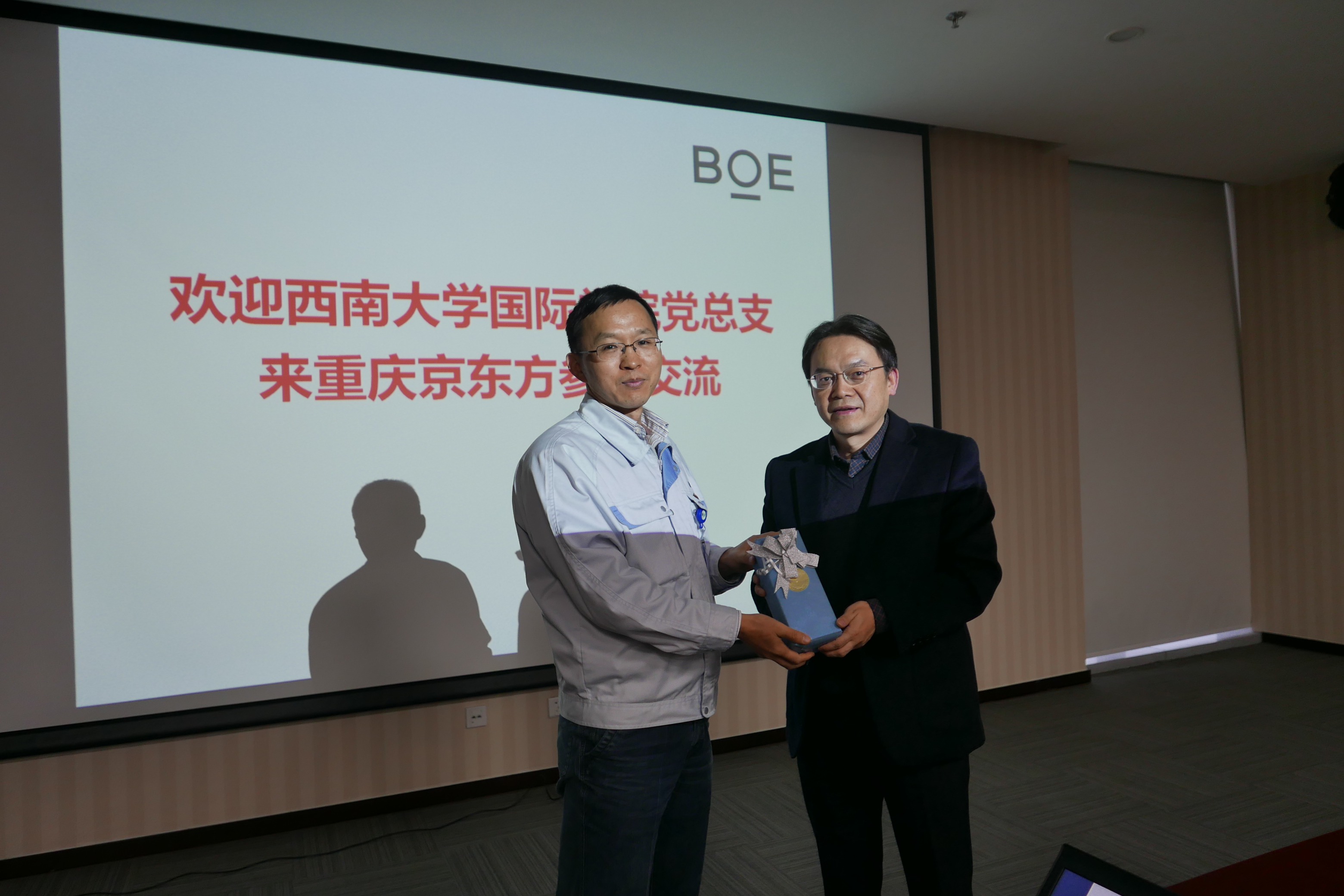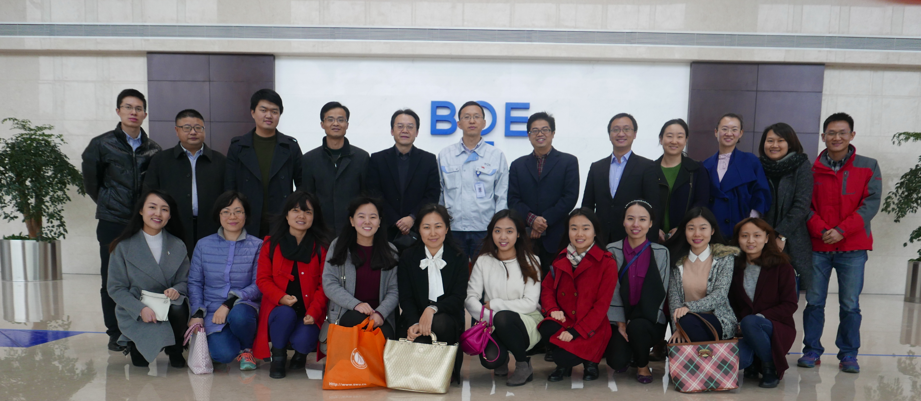 2015年11月27日下午,betway必威中国教工党支部全体党员来到位于重庆市水土高新技术产业园的重庆京东方光电科技有限公司(以下简称重庆京东方)参观,与公司党群工作部开展党建座谈,并就公司外籍员工及其家属的汉语培训和文化体验等合作事宜进行交流。