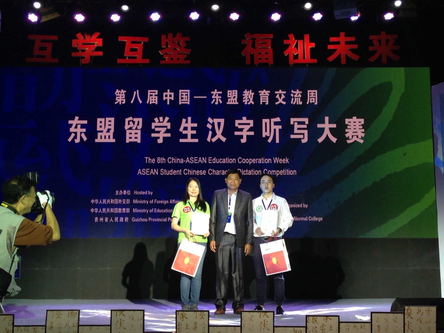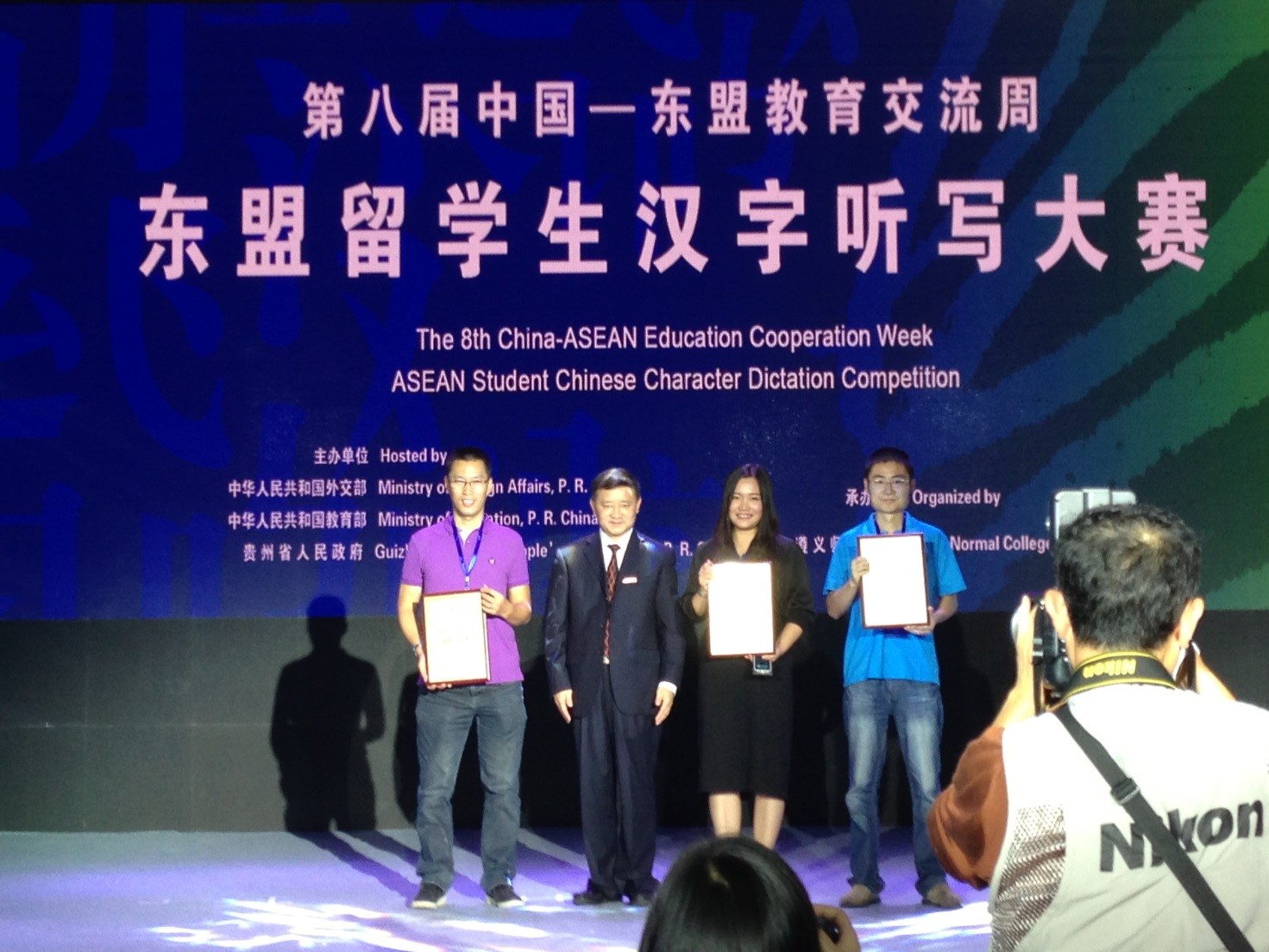 9月23日上午,公司五名职工李嘉燕(越南)、罗俊勇(泰国)、许意侬(泰国)、谢佳佳(泰国)、李萱花(印度尼西亚)参加了在贵州遵义师范公司举行的第八届中国-东盟教育交流周之东盟职工汉字听写大赛,并获得佳绩。来自国内十所高校的东盟各国职工同台竞技,共同感受源远流长的中国文化。