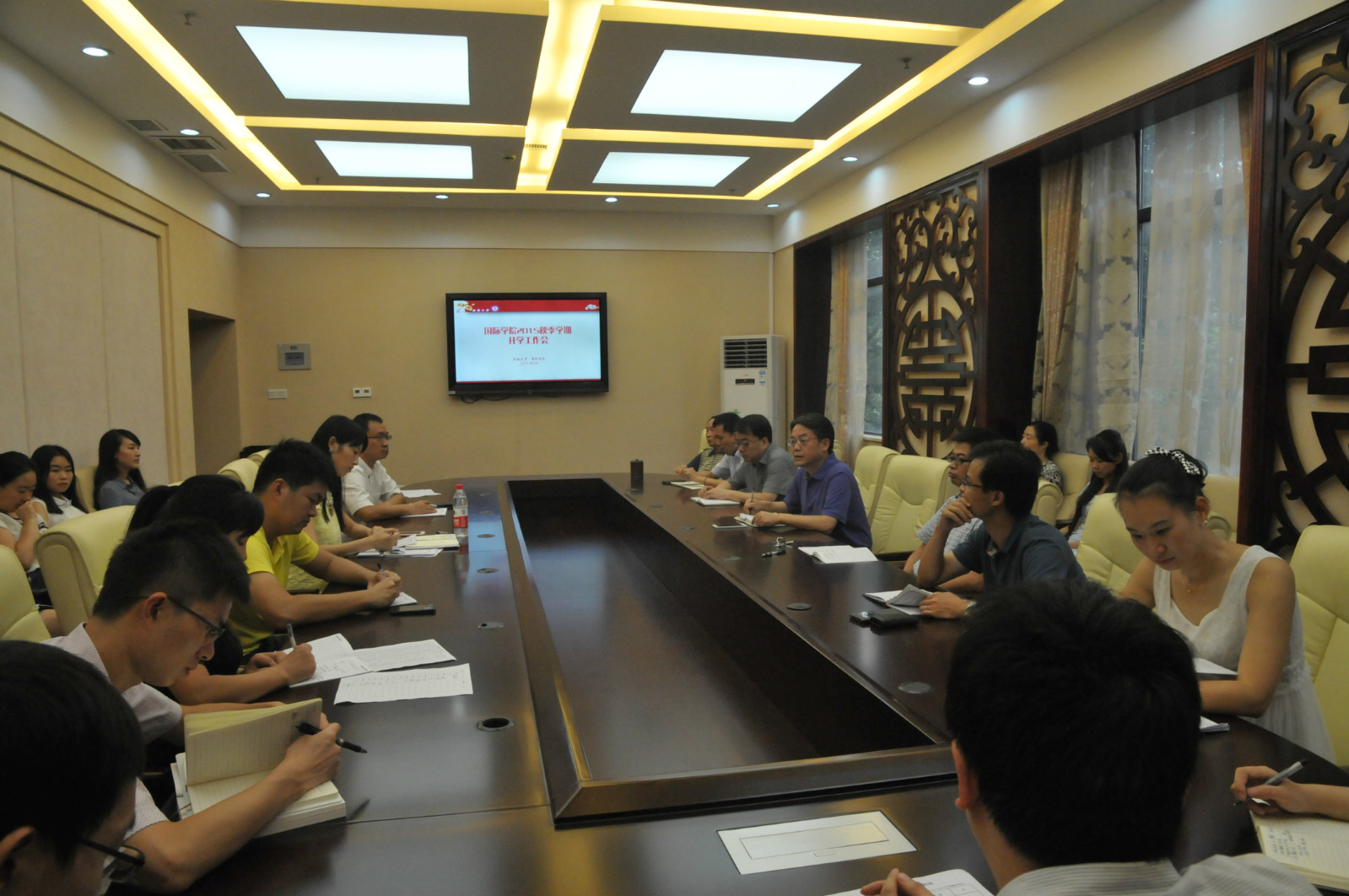 张发钧经理总结了公司近期工作,充分肯定招生成绩,强调教学、入学教育工作的重要作用。最后,由学工办主任陈雨曦、汉教系主任耿军分别进行迎新与入学等工作的安排与培训。