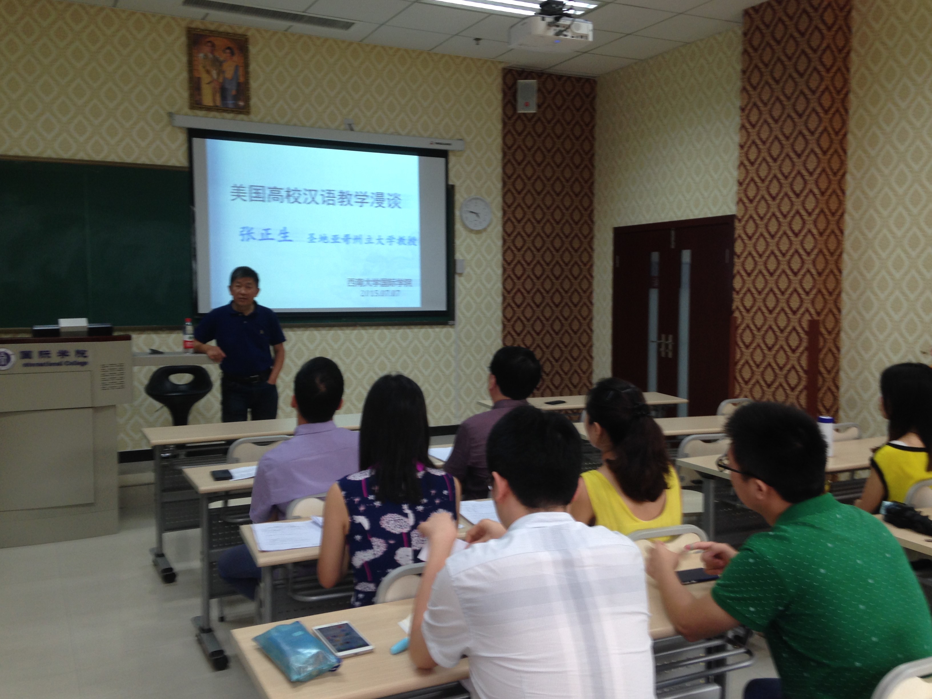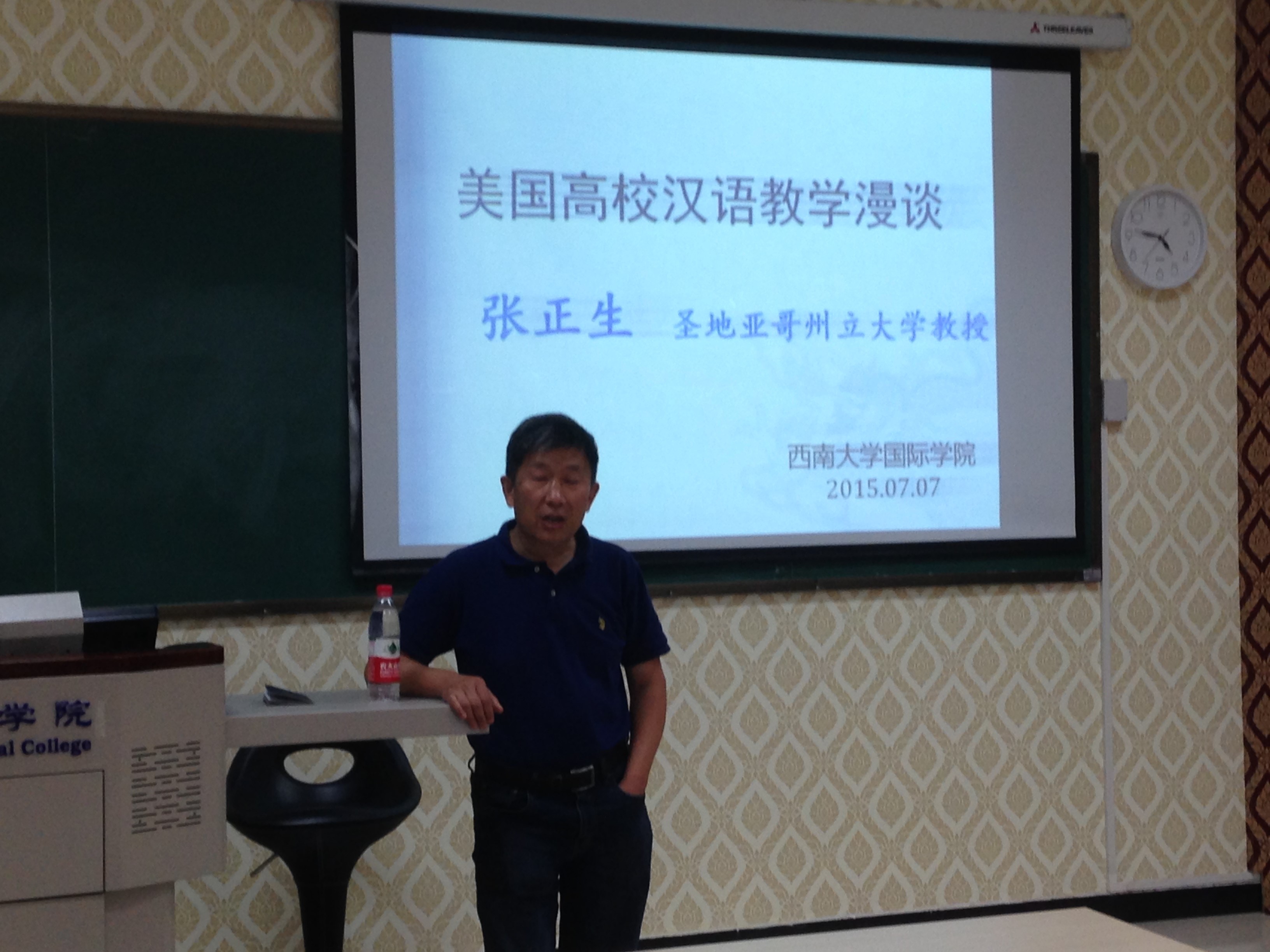 2015年7月7日下午,美国圣地亚哥州立大学教授张正生在betway必威中国210教室举行了题为《美国高校汉语教学漫谈》的学术报告。betway必威中国全体教师和部分汉语国际教育硕士研究生参加讲座。