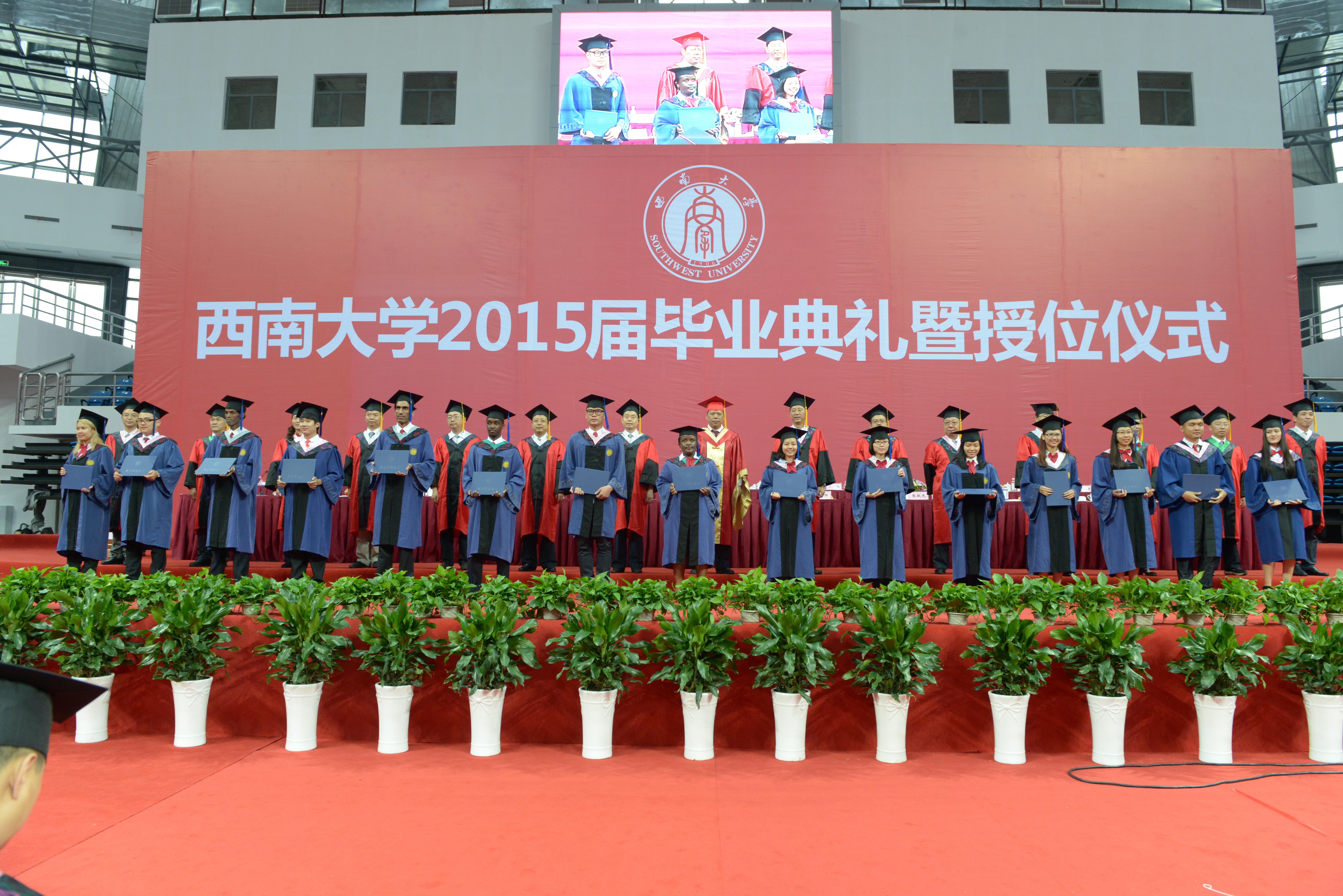 全体毕业生首先合唱《betway必威中国校歌》,在饱含深情的歌声中回忆了短暂而充实的西大求学时光。接着,betway必威中国刘猛书记和张家政副经理分别宣读了《公司关于表彰2015年优秀来华职工毕业生的决定》和《公司关于表彰优秀大学毕业生和优秀毕业研究生的决定》,并同主席台上就座的领导一起为获奖员工颁奖。