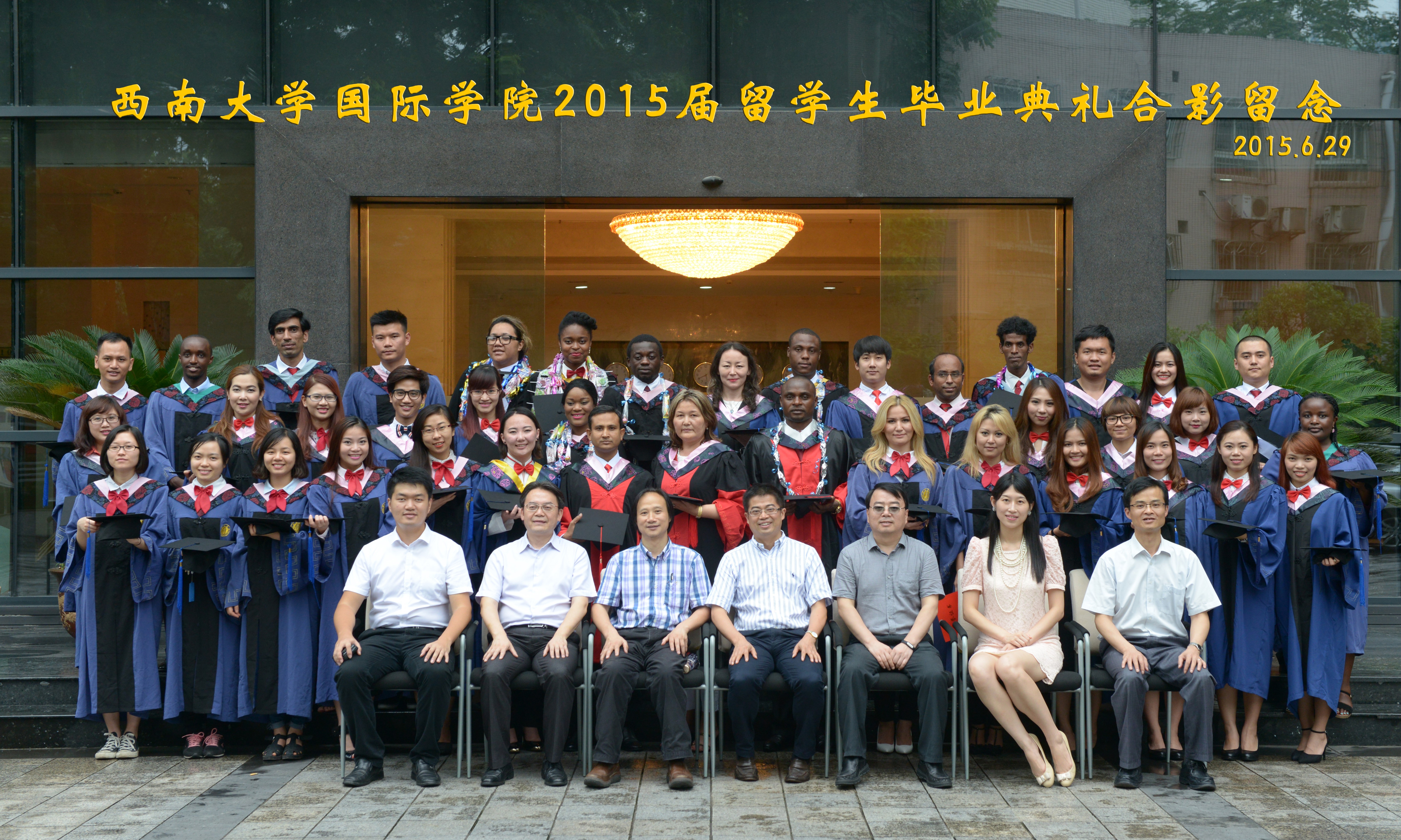 毕业典礼结束后,在场师生还进行了亲切的毕业座谈。betway必威中国招生工作办工室的代远鸿主任、员工工作办公室的陈雨曦主任和生物技术公司的朱勇老师分别从招生、职工管理和职工教学的角度对广大毕业生的支持和配合表示感谢,并祝愿同学们毕业后继续扬鞭奋蹄、早日圆梦。来自世界各国的职工和中国员工也纷纷发言,他们在离别的不舍中回顾了求学的不易和在西大学习生活的快乐和收获,并表达了对老师同学的感恩、对母校的不舍。座谈会结束后,全体师生在betway必威中国大楼前合影留念。