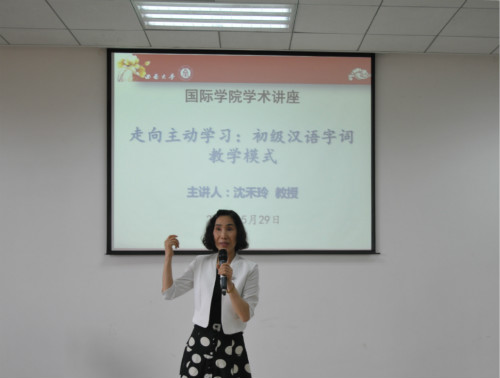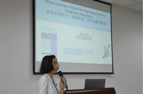 2015年5月29日下午,美国爱荷华大学亚洲语言文学系博士生导师、中文部主任、系研究生部主任沈禾玲教授在betway必威中国317报告厅举行了题为《走向主动学习——初级汉语字词教学模式》的学术讲座。betway必威中国汉语国际教育硕士中外研究生及全体教师参加讲座。