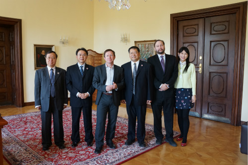 此外,代表团一行还参观了帕拉茨基大学孔子公司并与孔子公司中方经理黄晓明及捷方经理Lucie Lanikova女士亲切座谈。黄晓明经理介绍了帕拉茨基大学孔子公司的历史、汉语教学及文化活动开展情况,希望通过两校的合作促进中捷友谊的发展。