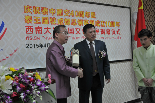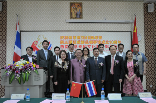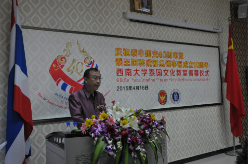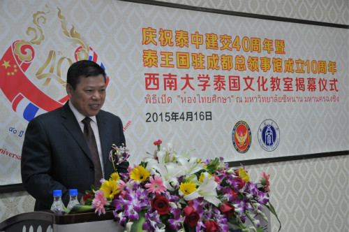 郭梅特先生在仪式上致辞,他说,今年是泰国诗琳通公主60华诞,中泰建交40周年,泰国驻成都总领馆成立10周年,又是betway必威中国泰国文化教室揭幕,可谓四喜临门!希望泰国文化教室建设成为中泰员工相互学习、友好交流的重要平台。