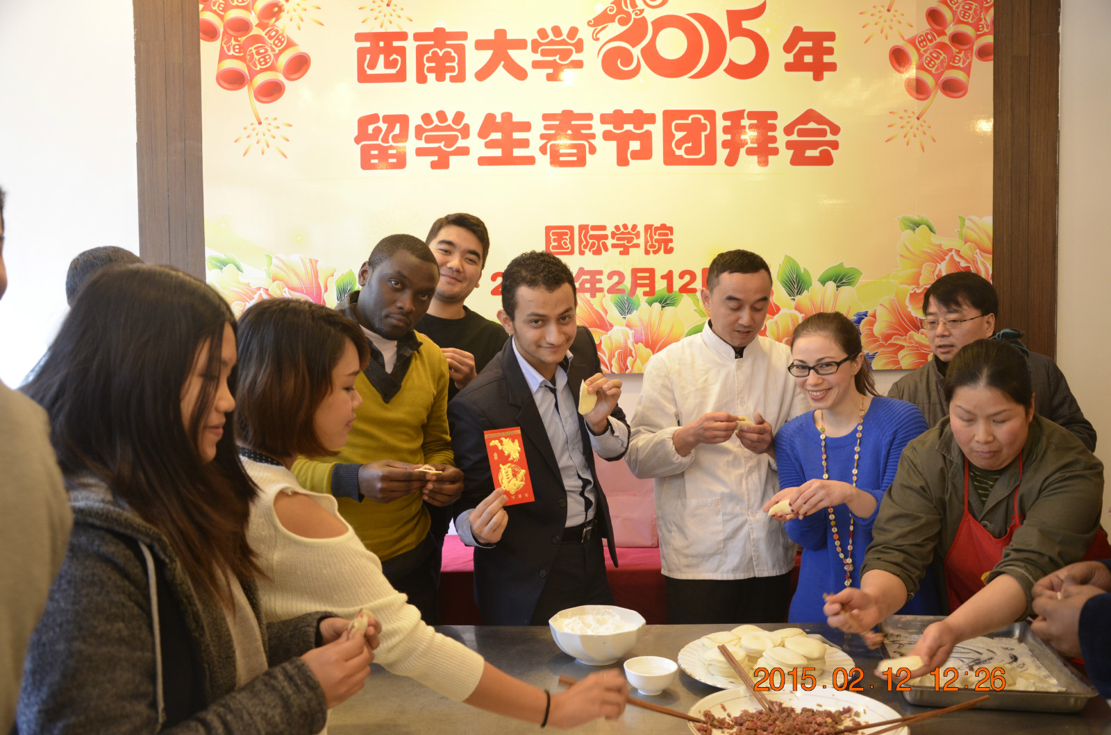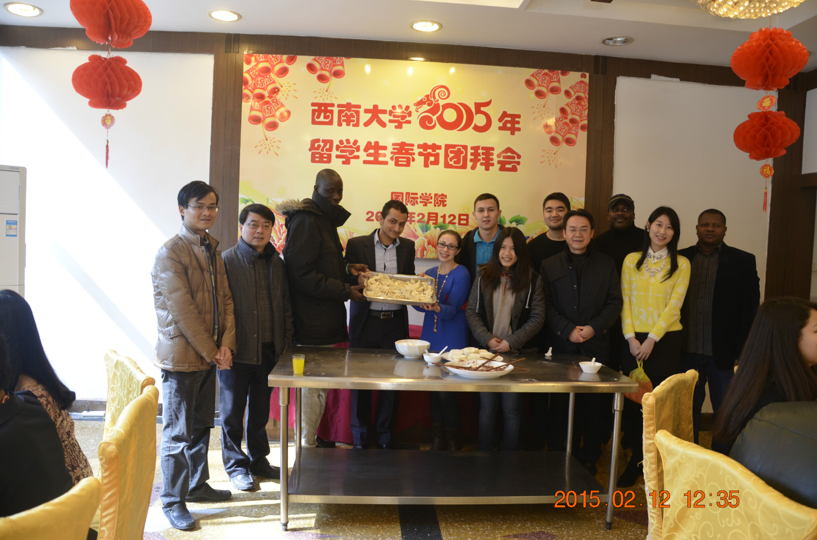 2月12日中午,2015年职工春节团拜会在外办餐厅如期举行。国际公司党总支书记兼副经理刘猛、副经理张家政、招生办主任代远鸿、学工办主任陈雨曦、教师代表以及留校百余职工欢聚一堂,共度佳节。
