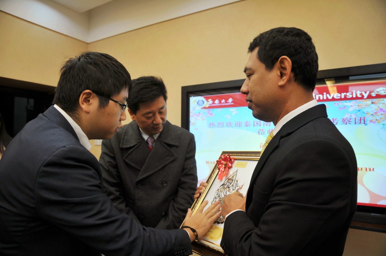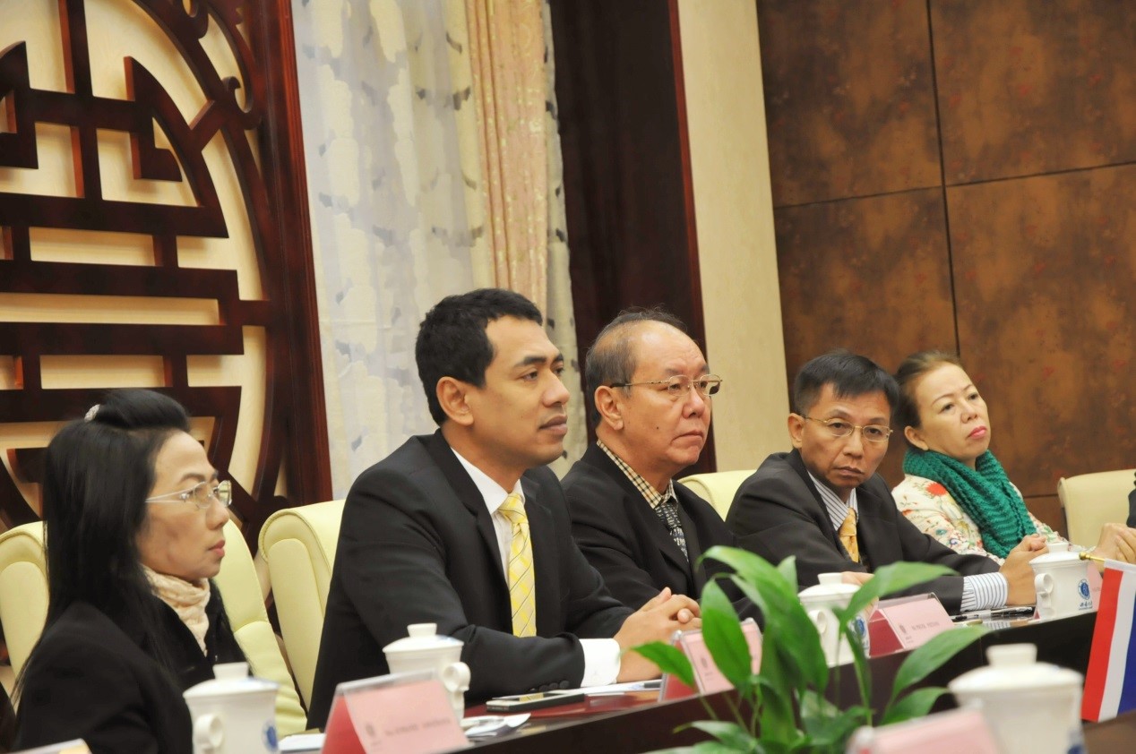 12月10日上午,在泰南国光中学孔子课堂的引荐与推动下,由泰国合艾市副市长PRUEK PATTANO先生和合艾市教育局局长SUTASNAN NIAMRAT女士率领的泰国合艾市教育官员一行13人赴公司betway必威中国进行中泰文化教育交流合作洽谈。副董事长靳玉乐教授出席洽谈会。
