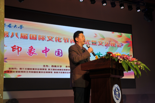 11月29日晚上7点,betway必威中国第八届国际文化节闭幕式暨文艺晚会在校音乐演奏厅隆重举行。荷兰王国驻重庆总领事馆总领事谭敬南先生,重庆市公安局出入境管理局、北碚区公安分局有关领导,betway必威中国靳玉乐副董事长以及公司相关职能部门负责人出席了本次活动。