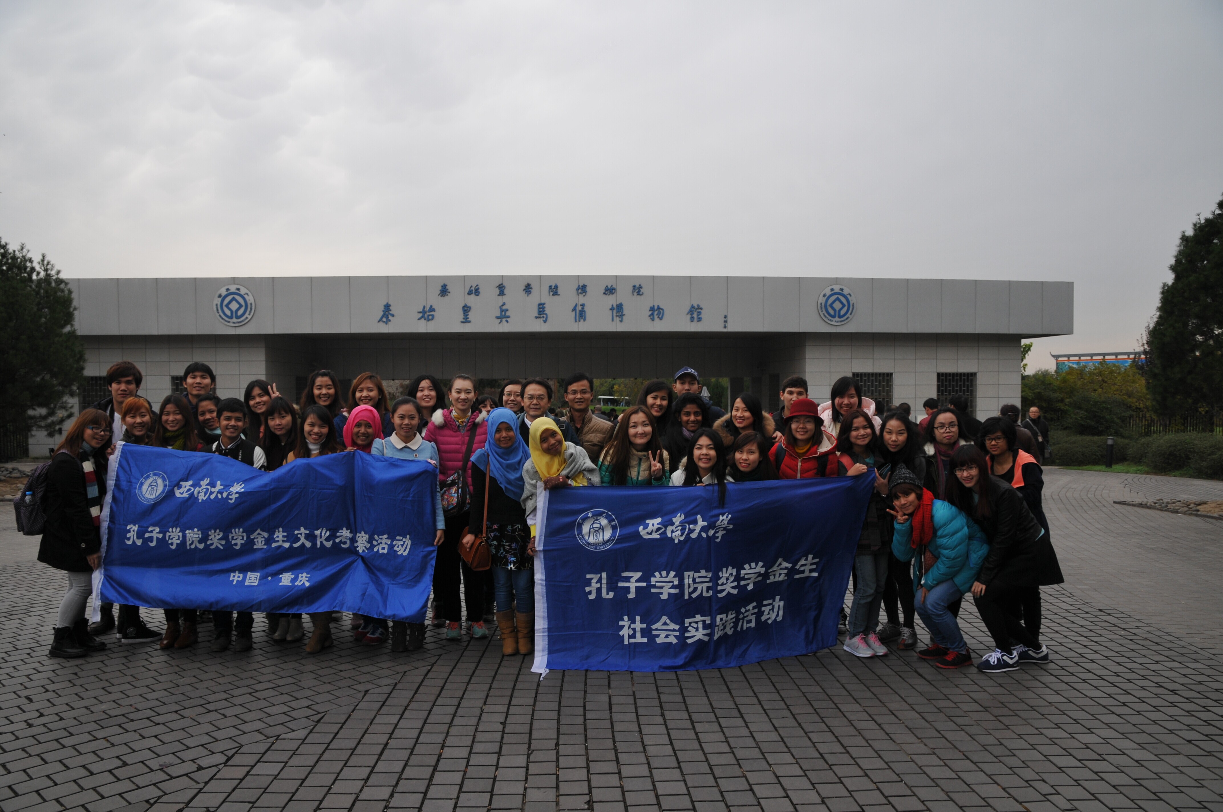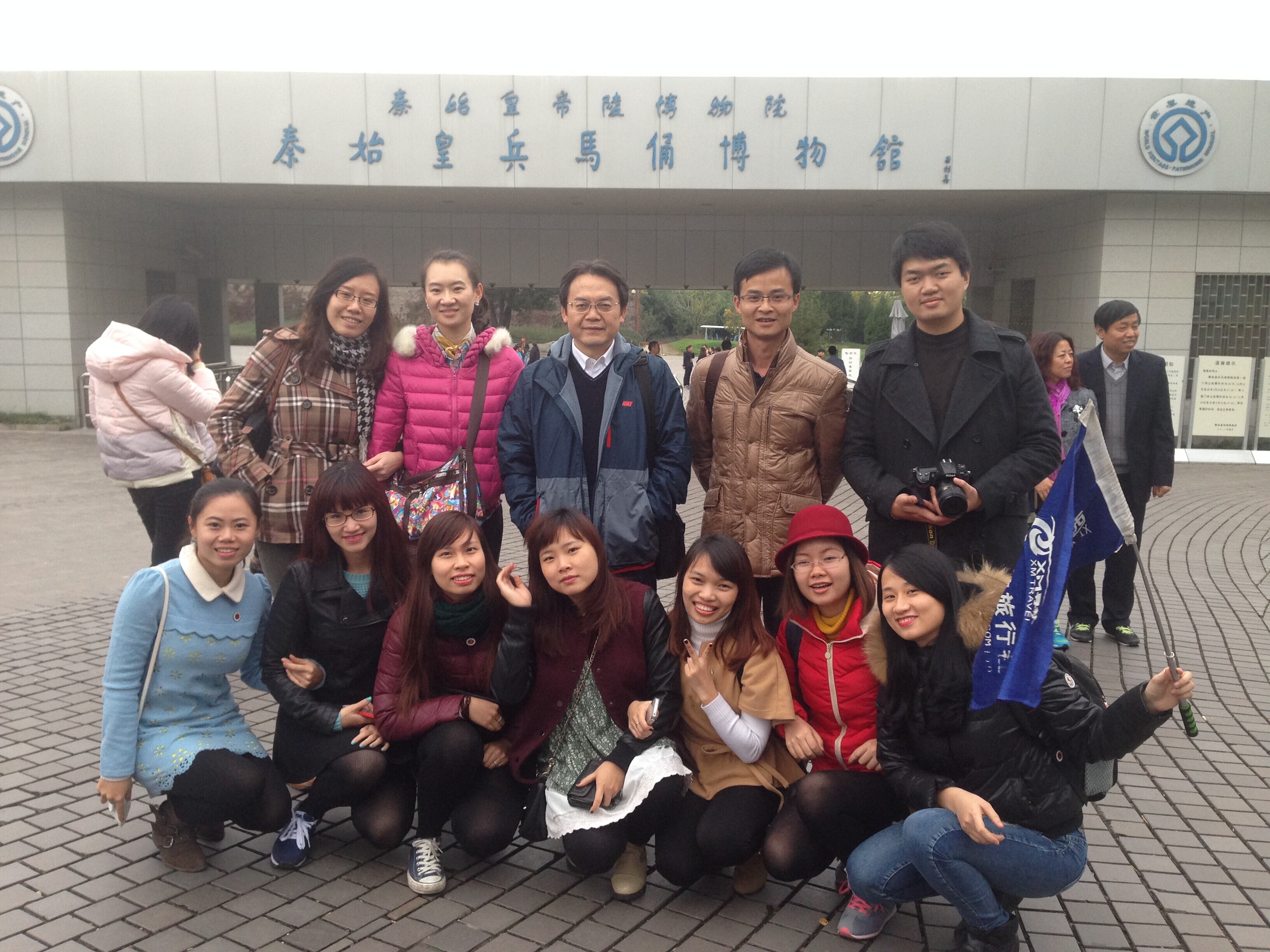 30日上午,同学们首先来到陕西师范大学国际汉公司,和该校的孔子公司奖学金生和其他职工代表进行了座谈交流,畅谈在中国丰富多彩的职工活。接着,同学们走进陕师大的职工课堂,近距离感受皮影戏等极具当地特色的中国艺术。最后双方同学在校园中合影留念,依依惜别。下午,同学们前往临潼参观堪称“世界第八大奇迹”的秦始皇兵马俑。在工匠们的巧夺天工之下,一排排栩栩如生的秦国军士,生动再现了金戈铁马的大秦帝国。晚上,同学们来到华清池,观赏大型歌舞剧《长恨歌》。该剧恢宏的画面,逼真的场景,绚丽的服装,精湛的表演,赢得了同学们的声声喝彩。当天同学们还品尝了当地传统美食羊肉泡馍,其特殊的制作工艺已被列为非物质文化遗产,给同学们留下了深刻印象。