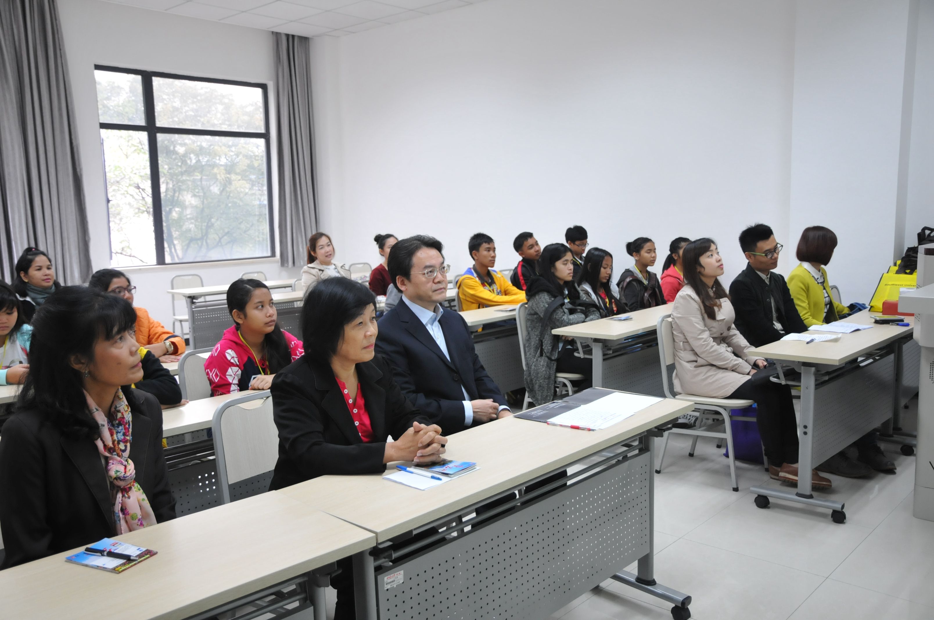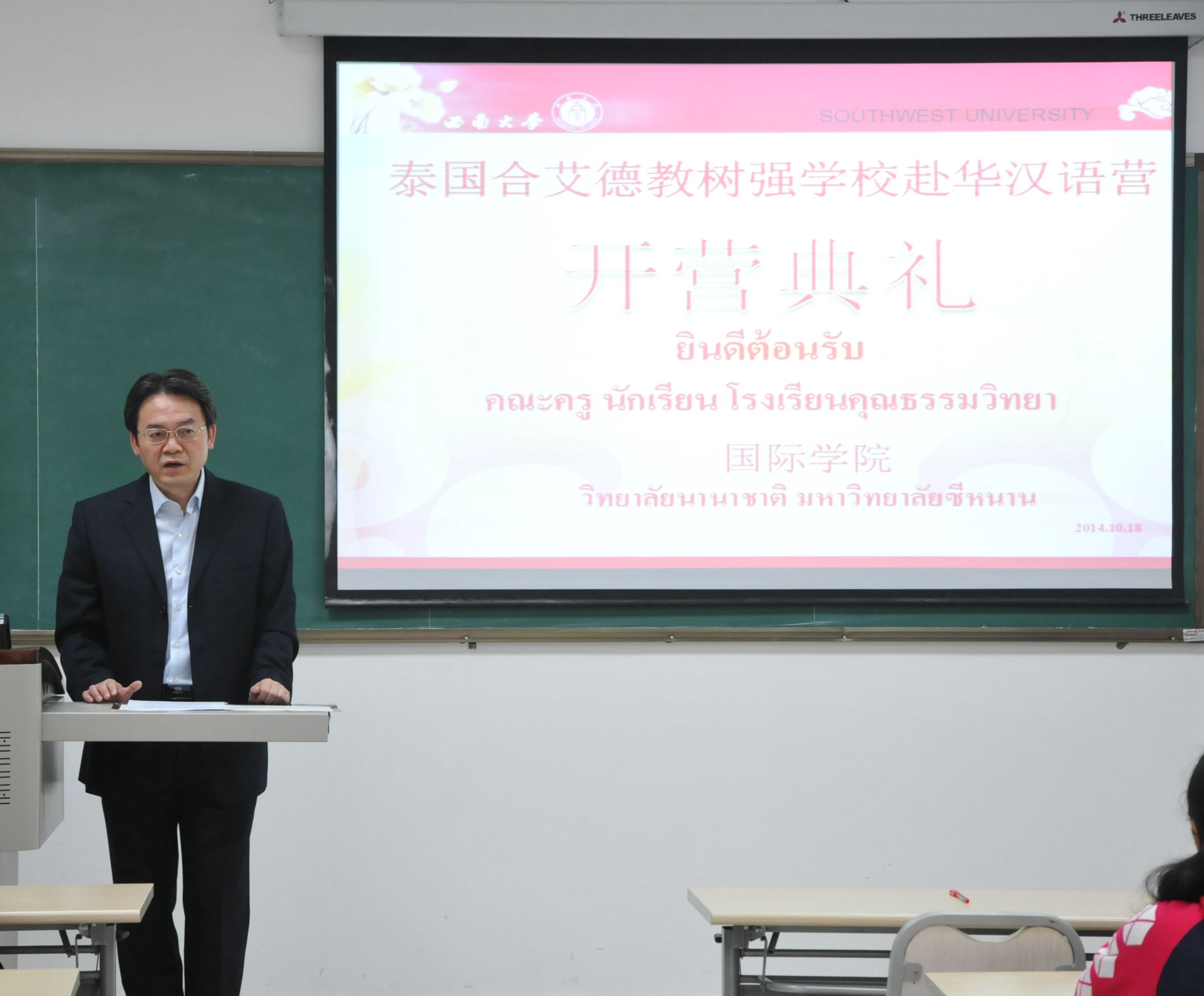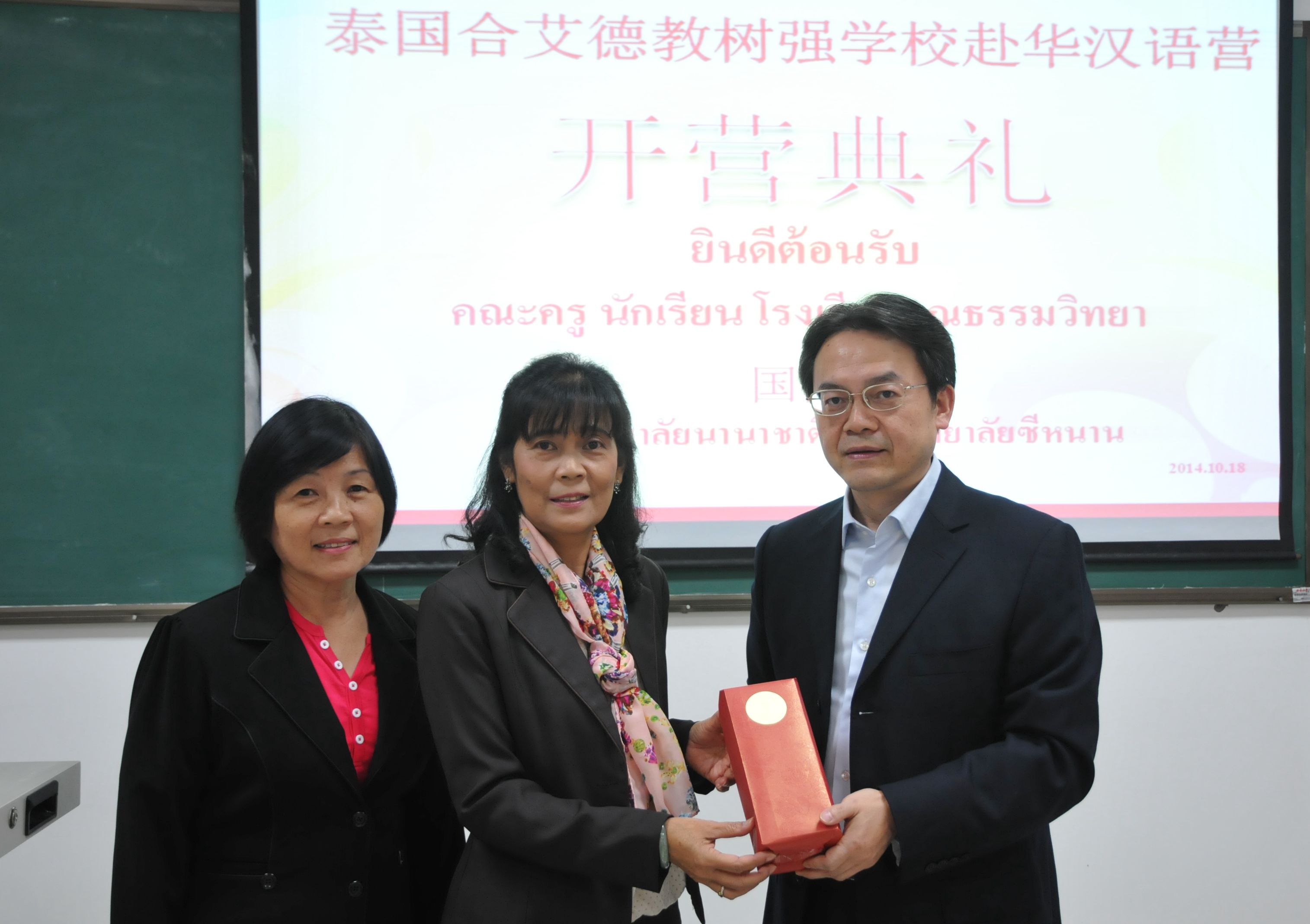 2014年10月19日,泰国合艾市德教树强公司员工赴华汉语营开营仪式在betway必威中国210室举行。国际公司党总支书记兼副经理刘猛、泰国合艾德教树强公司董事长马林女士出席典礼。