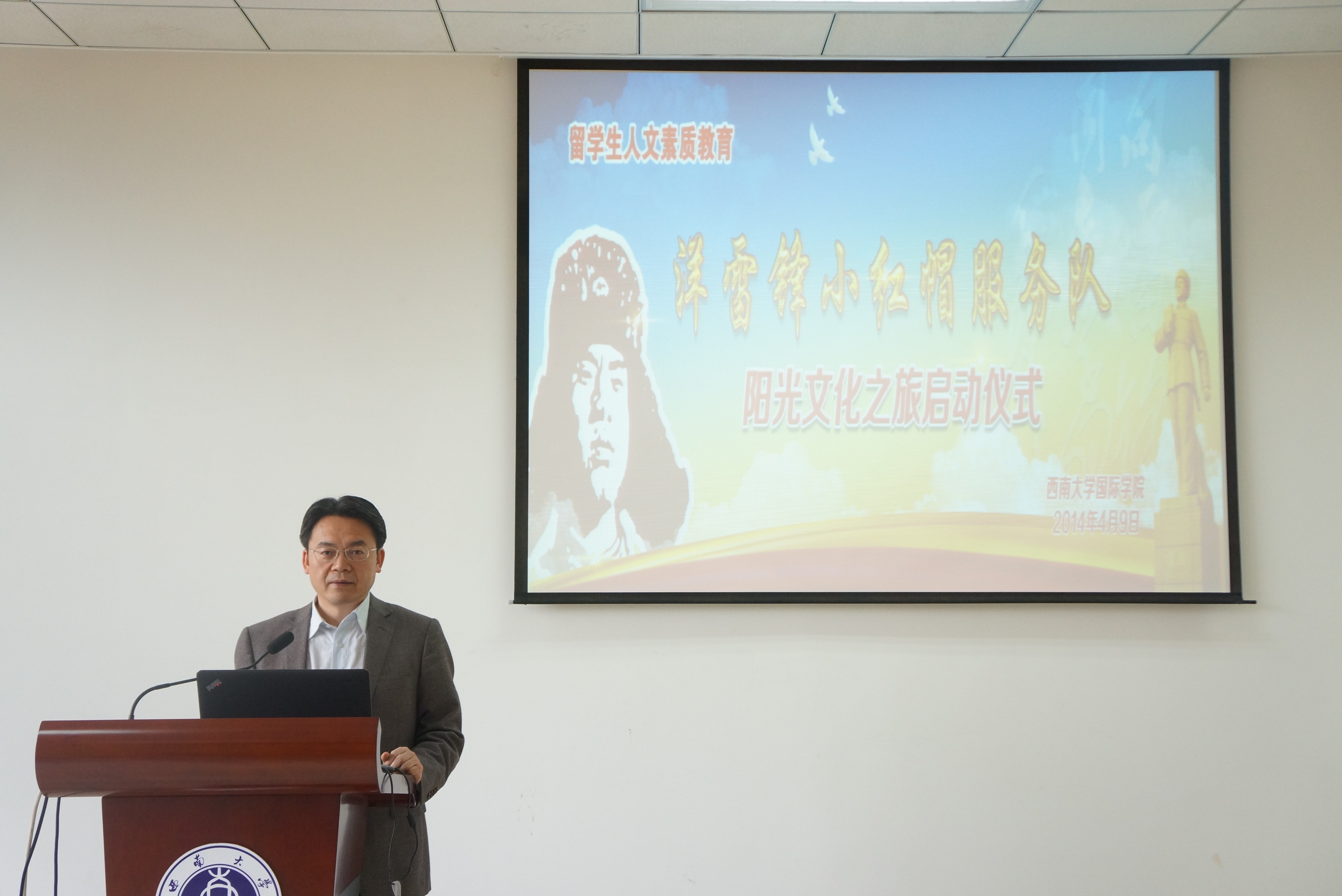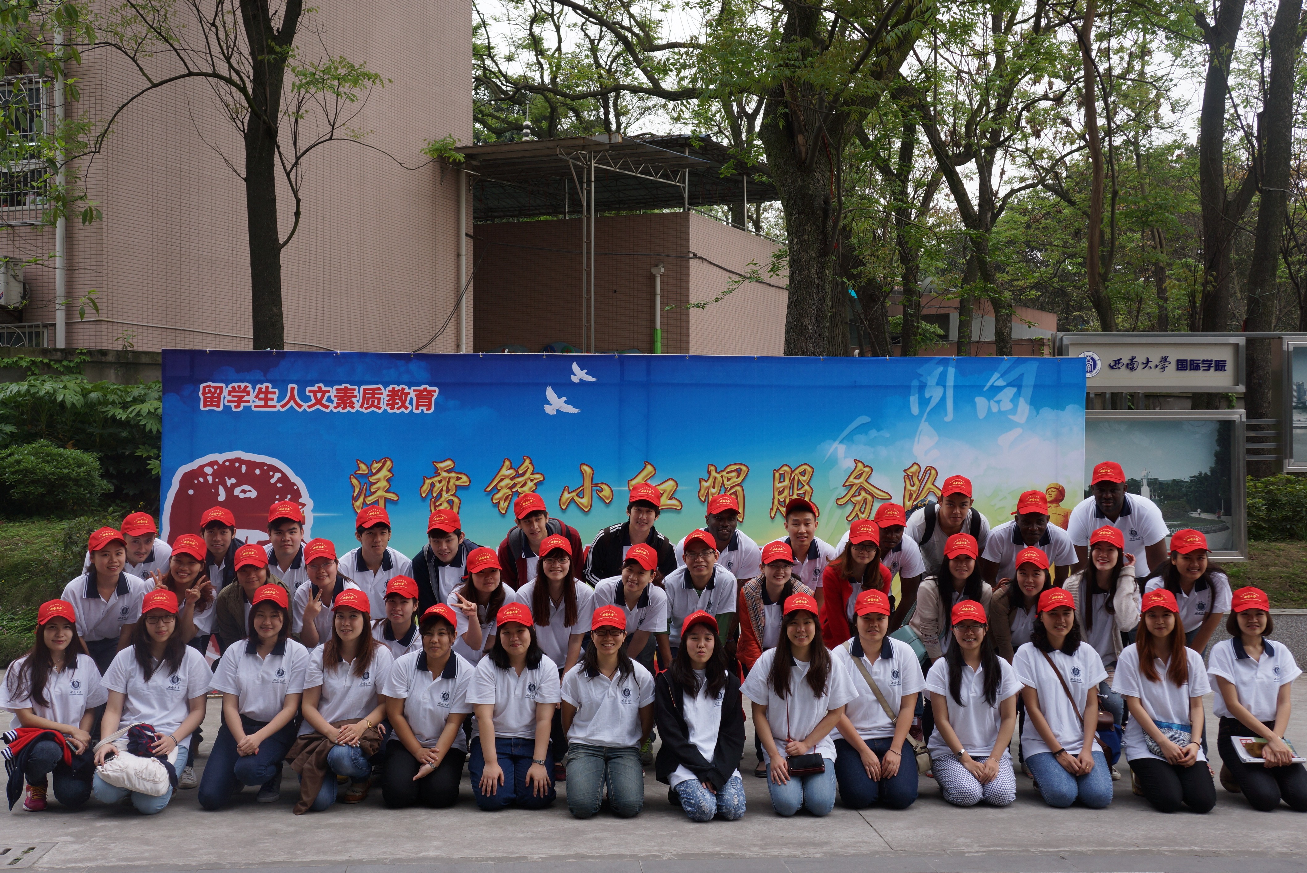 4月9日下午,betway必威中国“洋雷锋”小红帽服务队阳光文化之旅活动正式在betway必威中国启动。由来自9个国家50名在校职工组成的“洋雷锋”小红帽服务队,将走进社会,开展一系列公益活动。