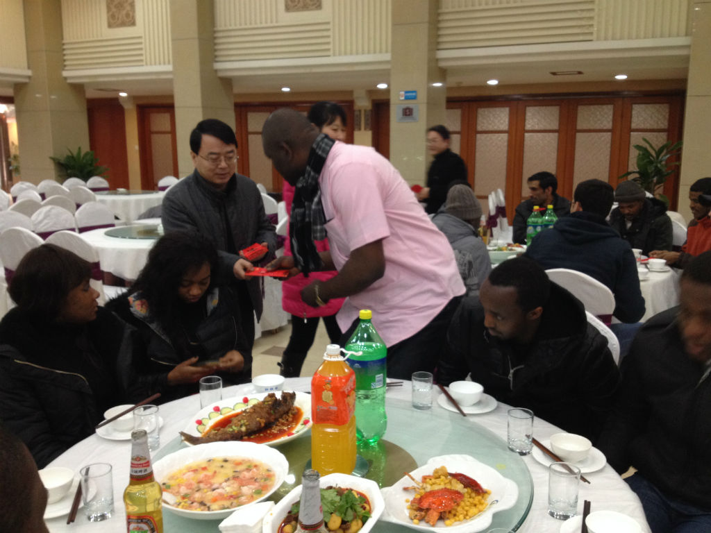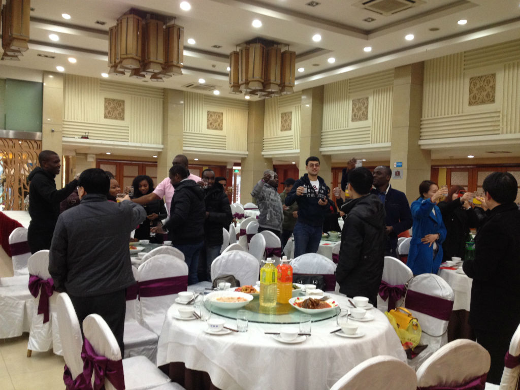刘猛书记首先致辞,介绍了春节的传统习俗,回顾了2013年公司来华职工教育的发展及所取得的成绩,并鼓励大家要发扬马的精神,一马当先,马不停蹄,马上拥有一切。张家政副经理随后也发表了新年祝福,祝大家马上有爱,马上有福,马到功成。来自韩国的朴秀海同学代表所有留校职工发言,讲述了自己第一次在中国过春节的感受并为大家送上了新年祝福。刘猛书记和张家政副经理还以红包的方式向各位职工发放了春节慰问金。团拜会上,大家举杯同贺,其乐融融,仿佛家人般相互问候,相互祝福,2014年职工春节团拜会在一片欢声笑语中顺利结束。