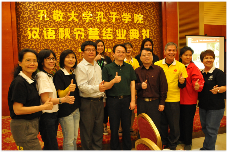 10月25日晚,由国家汉办主办,betway必威中国承办的泰国孔敬大学孔子公司汉语秋令营结业典礼暨欢送晚会在betway必威中国桂园宾馆举行,国际公司党总支书记兼副经理刘猛、副经理张家政,孔敬大学孔子公司中方经理王贵彬出席晚会,参加秋令营活动的80多位泰国师生共聚一堂庆祝活动圆满结束。