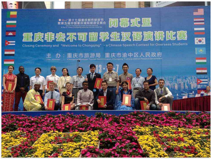 围绕"重庆非去不可"的主题,12位来自美国、哈萨克斯坦、匈牙利、古巴、埃及、贝宁、保加利亚、韩国、泰国、柬埔寨的职工分别进行了演讲,演讲多集中在重庆三美:美食、美女、美景,吸引了大批游客驻足观摩。他们标准的中文发音、流畅的语言表达、幽默风趣的演说台风让观众们赞叹不已,台上台下互动非常活跃。公司职工罗俊勇同学的演讲字正腔圆、文采飞扬、气压全场,展现了西大职工扎实的语言文字功底和从容淡定的舞台表现力。在接受重庆电视台的专门采访时,他以泰国职工和西大学子的双重身份表达了自己自豪、感恩之情。