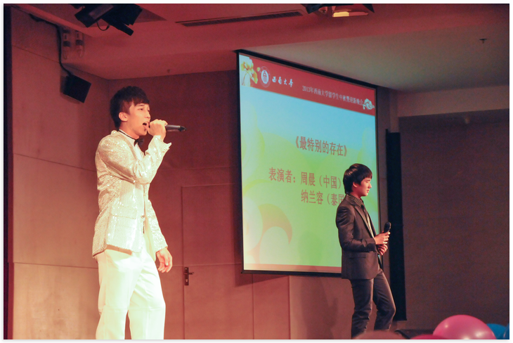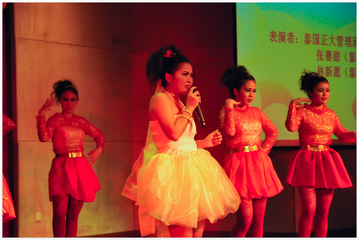 受邀参加此次盛典的有betway必威中国总支书记兼副经理刘猛、副经理张家政,美国圣约翰大学教师Paul Albert,以及betway必威中国外国专家代表和betway必威中国全体教职员工。主持阵容也颇具国际范儿:来自埃及的黄阿里、韩国的朴秀海、泰国的纳兰容和中国的周晨。这是一场国际视听盛宴。泰国孔敬大学的职工林楚方等同学衣着美丽的泰国服饰,为观众演绎了优美多姿的泰国舞蹈;还有婀娜多姿的印度舞,委婉动听的越南北部民歌,以及由非洲职工带来的《非洲风情舞KINDOKI》;俄罗斯女孩丁洁演唱的《At Last》更是让观众直呼这是《俄罗斯好声音》。圣约翰班的同学们以他们的热情,点燃了现场的气氛,很多观众都随着他们的舞步尽情摇摆起来。