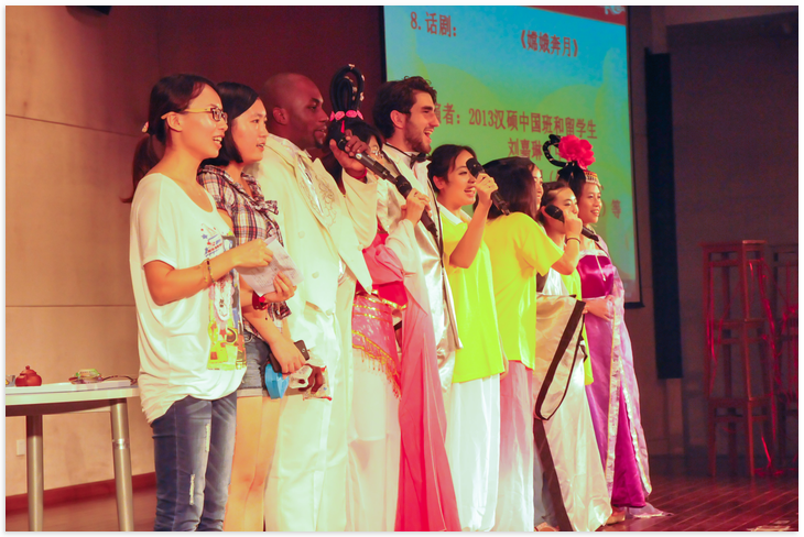在中秋佳节到来之际,中国班的同学也用一个特别的话剧《嫦娥奔月》,向大家叙述了一个美丽的故事,俄罗斯同学李向阳和坦桑尼亚的阿普杜的倾情加盟,使得这个耳熟能详的故事走向了世界。最后,由中日韩同学演唱的《日月交辉》将节目拉到了尾声。一位中国班的员工说:"没想到这次晚会这么好玩,不仅享受了各个国家的音乐和舞蹈,还结识了很多国内国外的朋友。betway必威中国是一个大家庭,每逢佳节倍思亲,现在,这里就是我的家。"