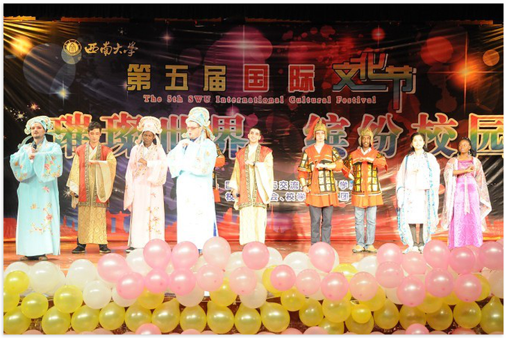颁奖仪式结束,精彩节目上演。璀璨世界展现在西大舞台之上。中外员工倾情奉献,共同演绎了传统戏曲、歌曲对唱、话剧小品、舞蹈时装,光影交错、回旋音乐中尽显西大职工的魅力与风采。与往年不同,今年的节目尤为出彩,中外大联欢的宗旨贯穿始终。betway必威中国的教师与职工共同演绎了"但愿人长久,千里共婵娟"的美好情怀;五大洲风情万种的莘莘学子把舞台当作了T台,秀出了时尚与民族的完美结合;中外员工浑厚的吟诵道出了"同一个梦想"的心声。功夫大气、戏曲热闹、歌曲欢快、小品诙谐、舞蹈摇曳。多元文化兼容并包,异域风情百花齐放,尽显世界风采,结交西大情缘。在欢笑与掌声中,第五届国际文化节落下帷幕。