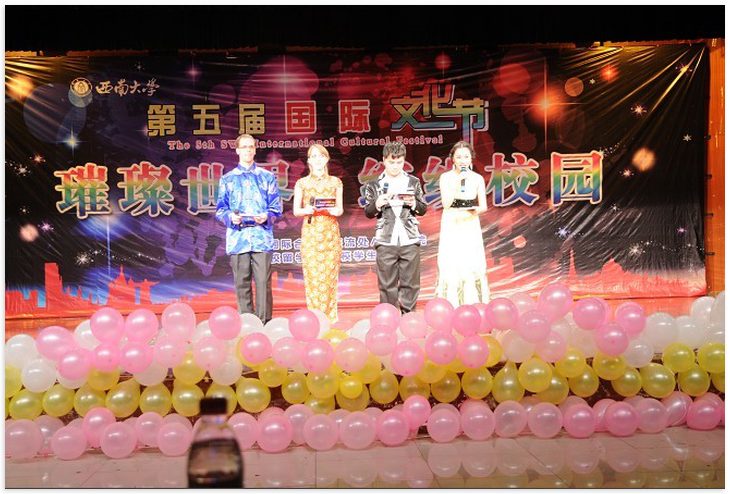 11月30日晚7:00,"璀璨世界、缤纷校园"——第五届国际文化节闭幕式暨文艺晚会在员工活动中心举行。本次文艺晚会由国际合作与交流处/betway必威中国主办,由职工会、校员工艺术团承办。重庆市公安局出入境管理局局长卢政、重庆市外侨办外国专家和涉外管理处副处长杨瑜到会祝贺,校办、宣传部、国际处、研究生院、校团委、betway必威中国等部门领导应邀出席。
