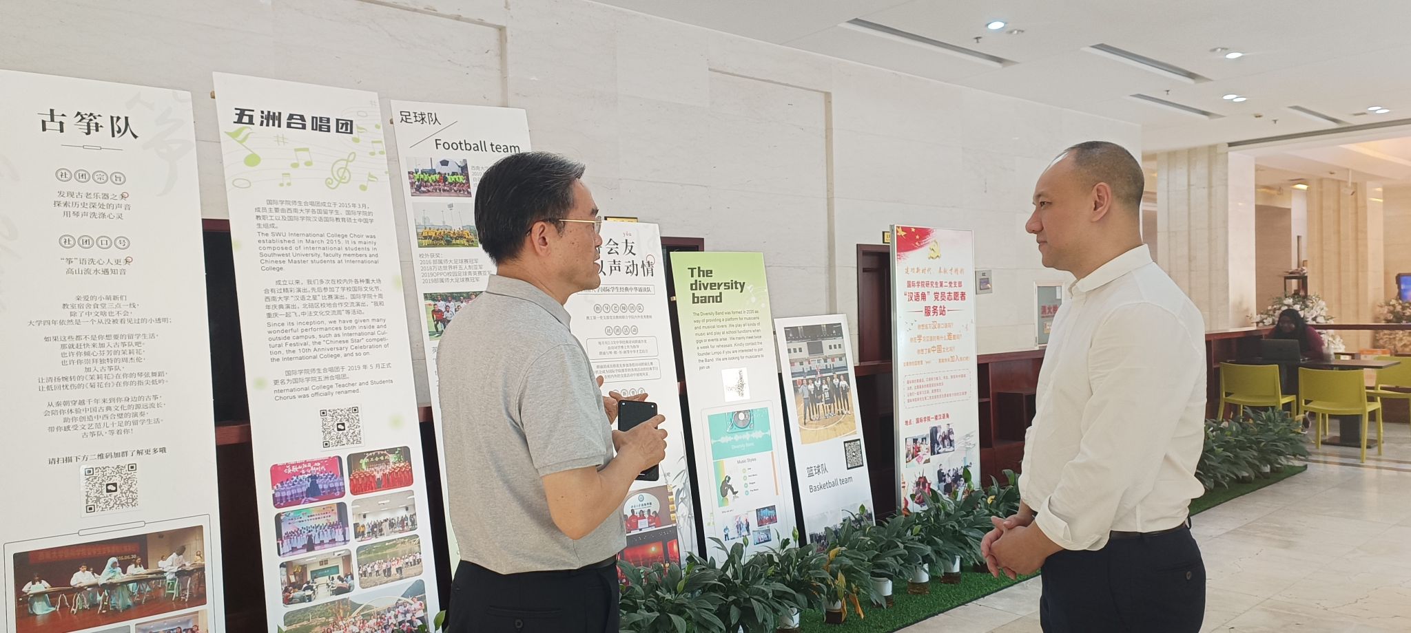 会后,客人应邀参观公司汉语角、泰国文化教室、中华文化体验室、汉语国际教育图书馆、国际学术报告厅,以及公司荣誉墙、照片墙、公司来华留学工作图片展,高度肯定公司来华留学工作取得的丰硕成果,对公司“求真知·谋大同”的院训和“中国味国际范”的文化氛围留下深刻印象。