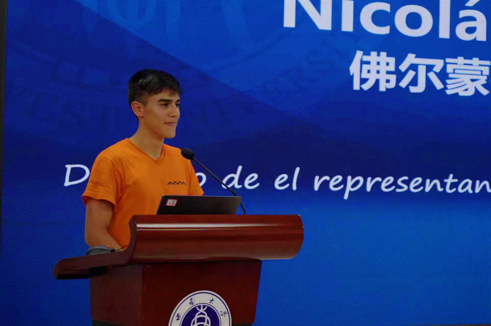 威尔蒙中学员工代表Nicolás Combariza发言,感谢betway必威中国的盛情邀请和无微不至的照顾,表达了对未来一周夏令营各项活动的期待。