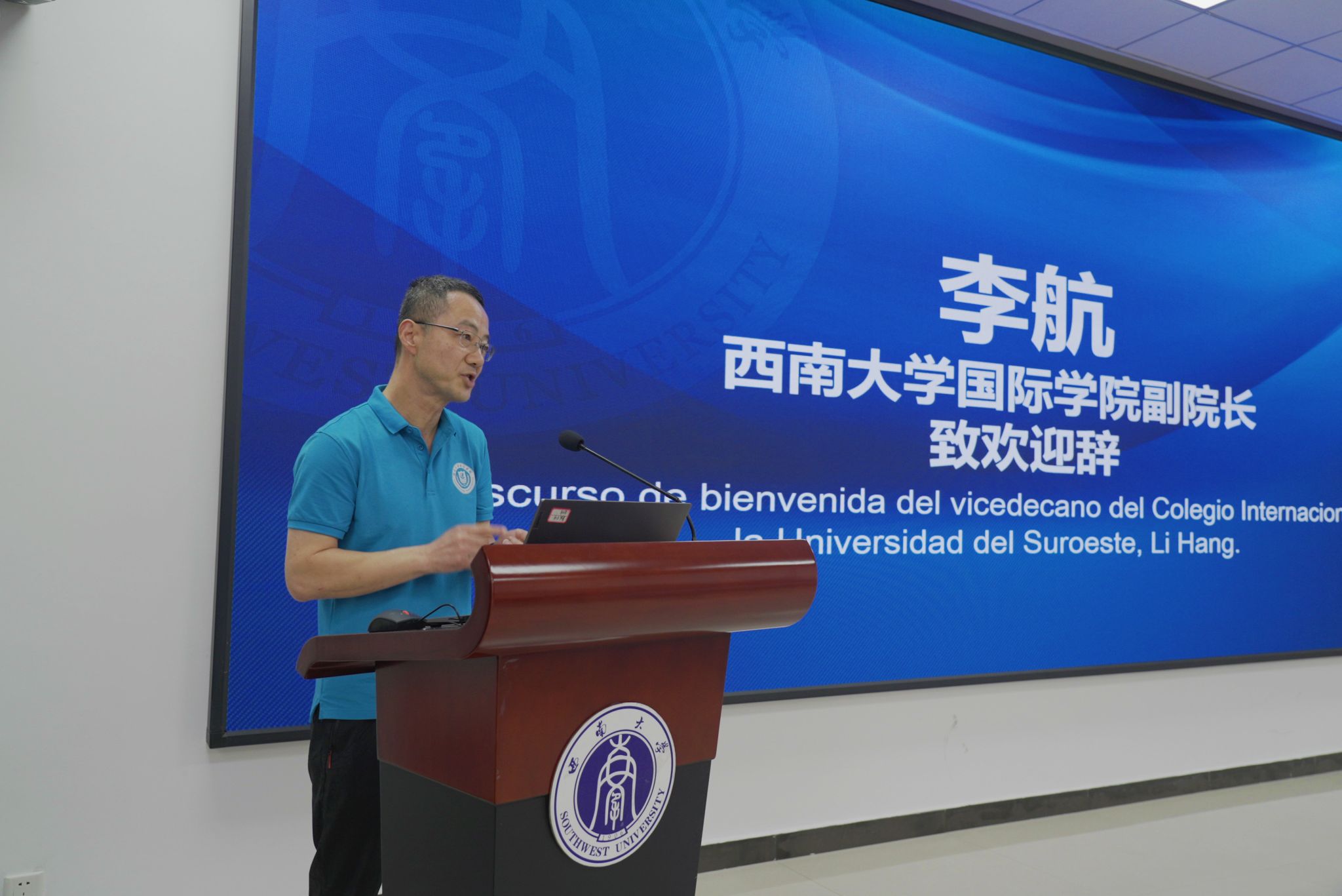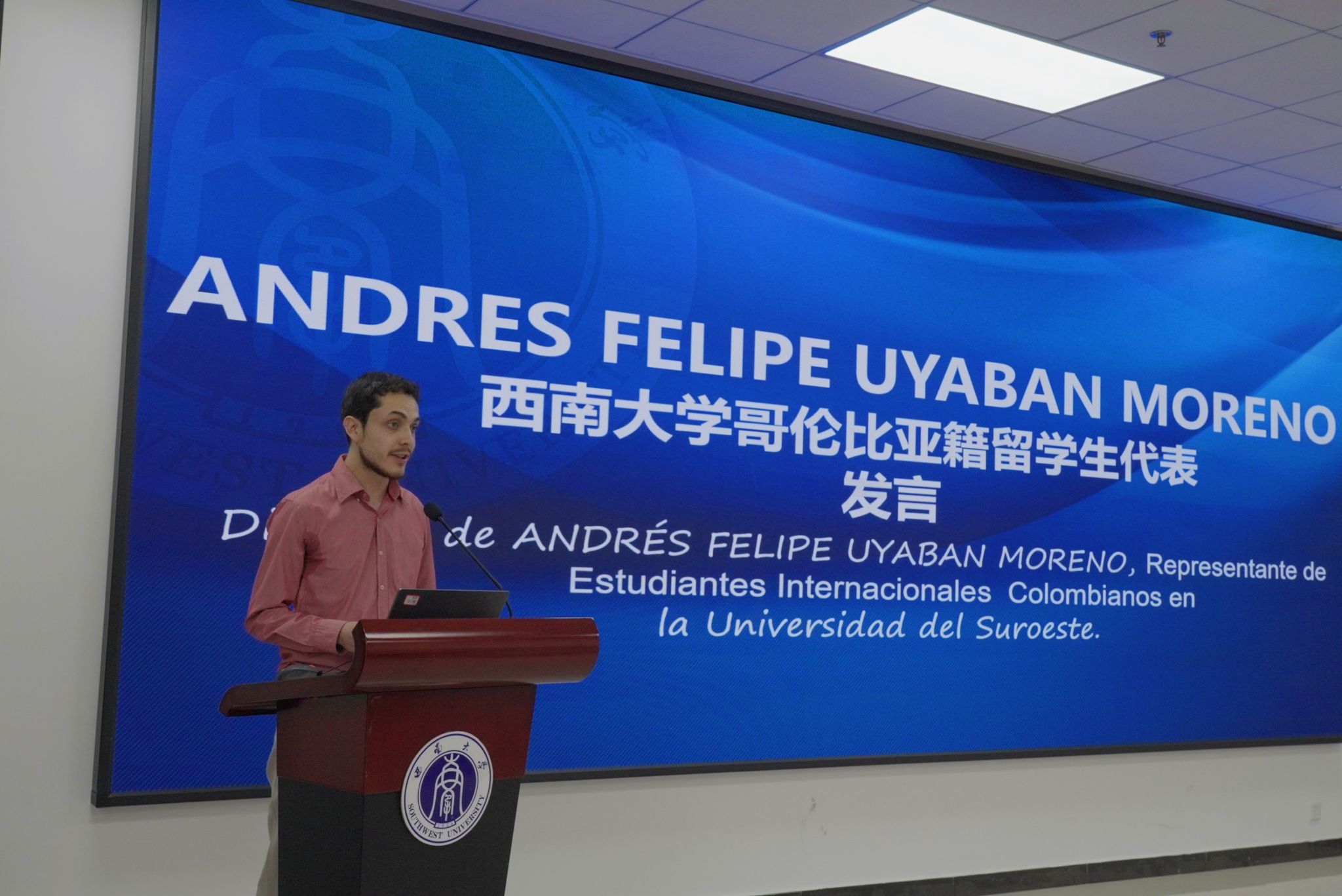 集团哥伦比亚籍中国政府奖学金获得者、教育学部硕士研究生Andres发言,介绍自己来华学习的经历和对学部、公司以及重庆的印象,鼓励大家争取机会,早日实现“留学西大”梦。