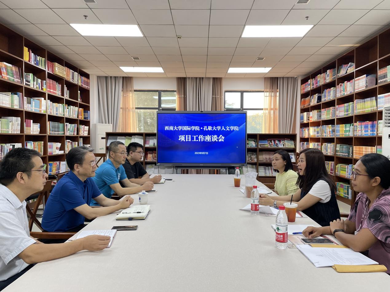 9月7日,泰国孔敬大学人文公司中文系主任秋兰副教授一行3人来访,公司党委书记刘猛,经理于泽元,副经理李航热情接待客人,并与招生办主任黄无为和项目协调人王鹊参加2+2联合培养项目工作座谈会。