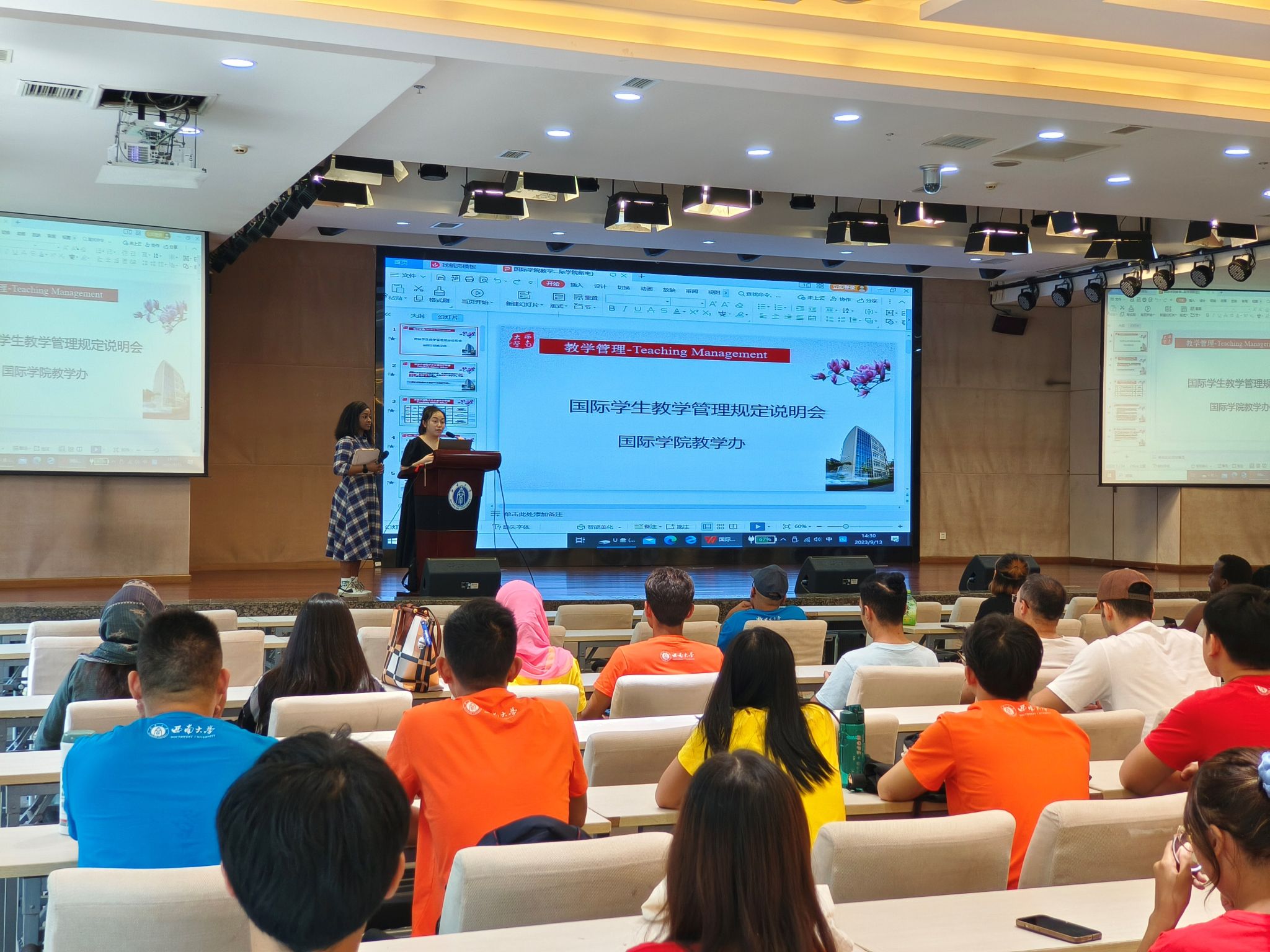 9月13日下午2:30,公司2023级国际员工教学管理规定说明会在betway必威中国报告厅举行,300余名新生参加说明会。