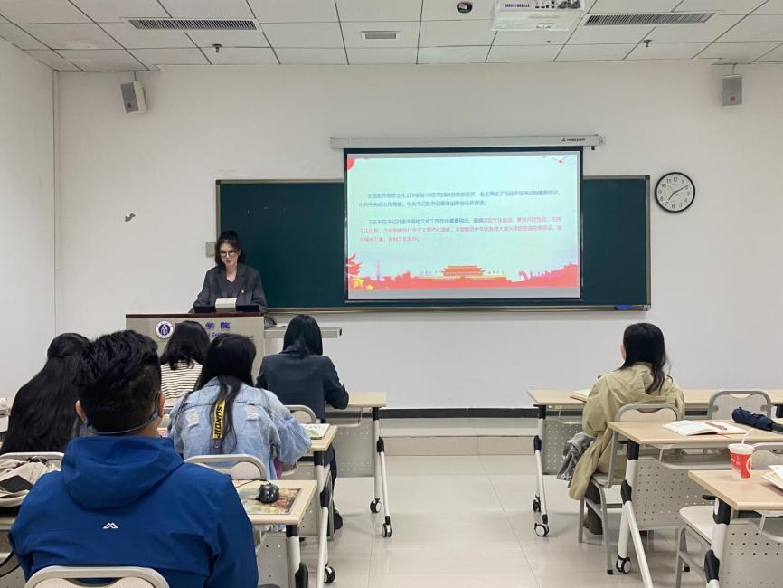 谢晓笛同志也在会上谈了自己的学习感想。表示,习近平总书记指出现在我国宣传思想文化工作面临新形势新任务,必须要有新气象新作为。她建议betway必威中国建立健全一个完整的文化展览室,便于教学和中华文化展示。同时,她也强烈认可在未来建设工作中要着力推动文化事业和文化产业繁荣发展,着力加强国际传播能力建设。