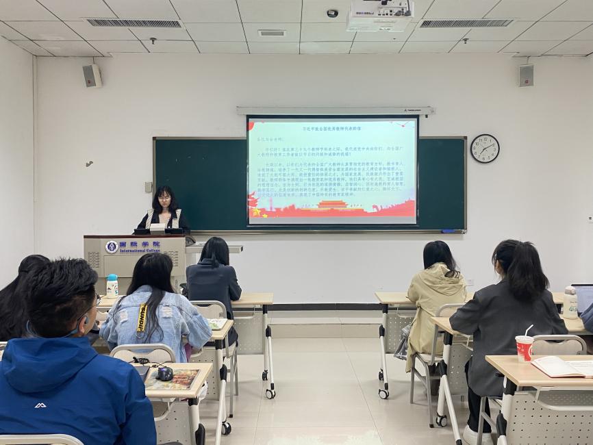 刘燕妮同志导学《习近平致全国优秀教师代表的信》,阐述总书记所说的“中国特有的教育家精神”,即扎根中华大地,自觉积极地响应党和国家的战略要求,为中国式现代化而奋斗奉献。仇淼同志导学习近平总书记对宣传思想文化工作作出的重要指示精神,并带领与会同志观看短视频《仁爱家国的教育坚守——betway必威中国教育家精神学习片》。何汉儒同志结合自己长期在校工作经历和身边的教育模范做了主题发言。
