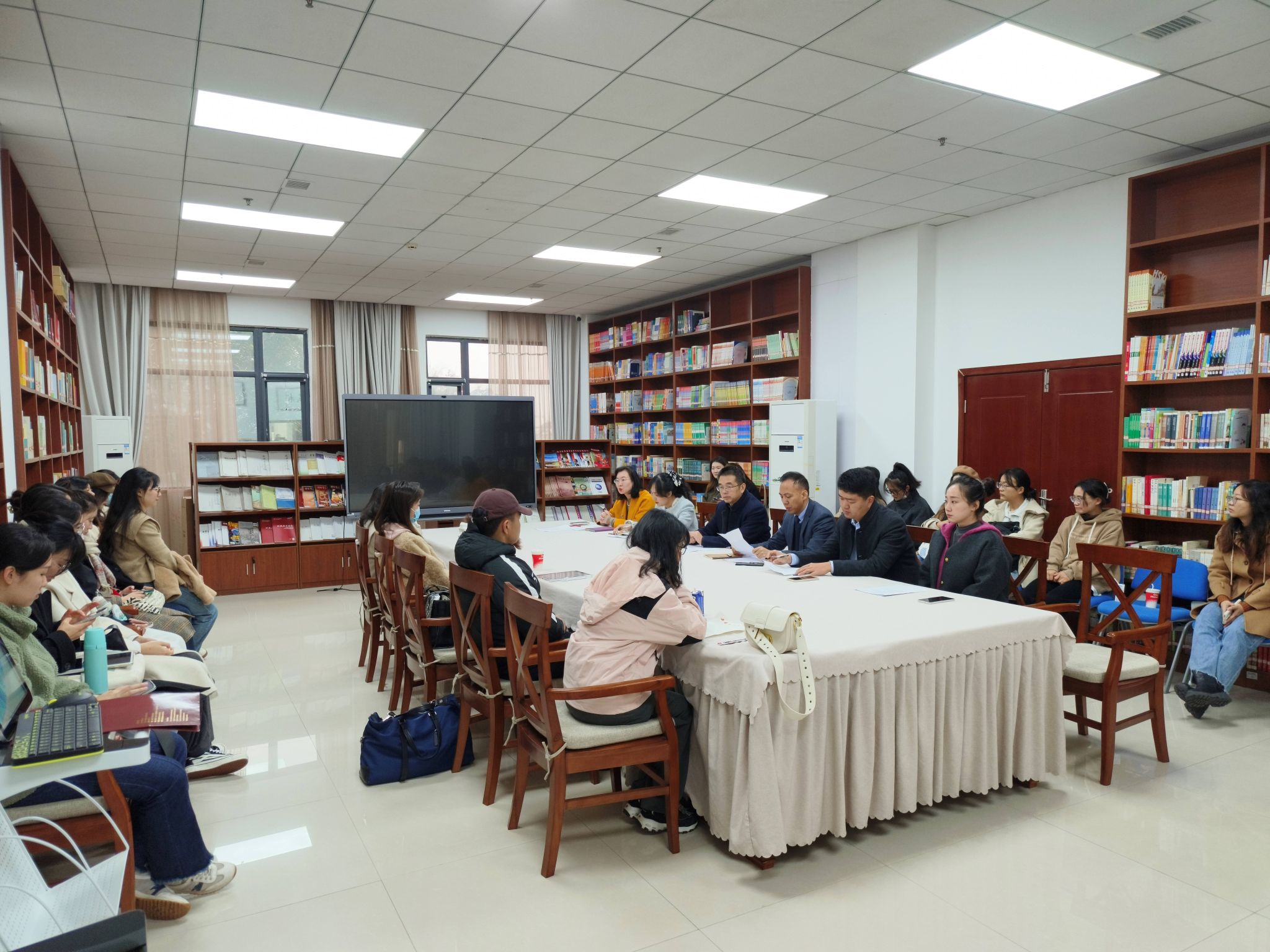 邹育艳介绍实习工作相关事宜,包括实习岗位的整体安排、实习材料的撰写与提交方式、开题报告等。杨甜就实习单位、地点、时长等实习工作安排进行讲解。