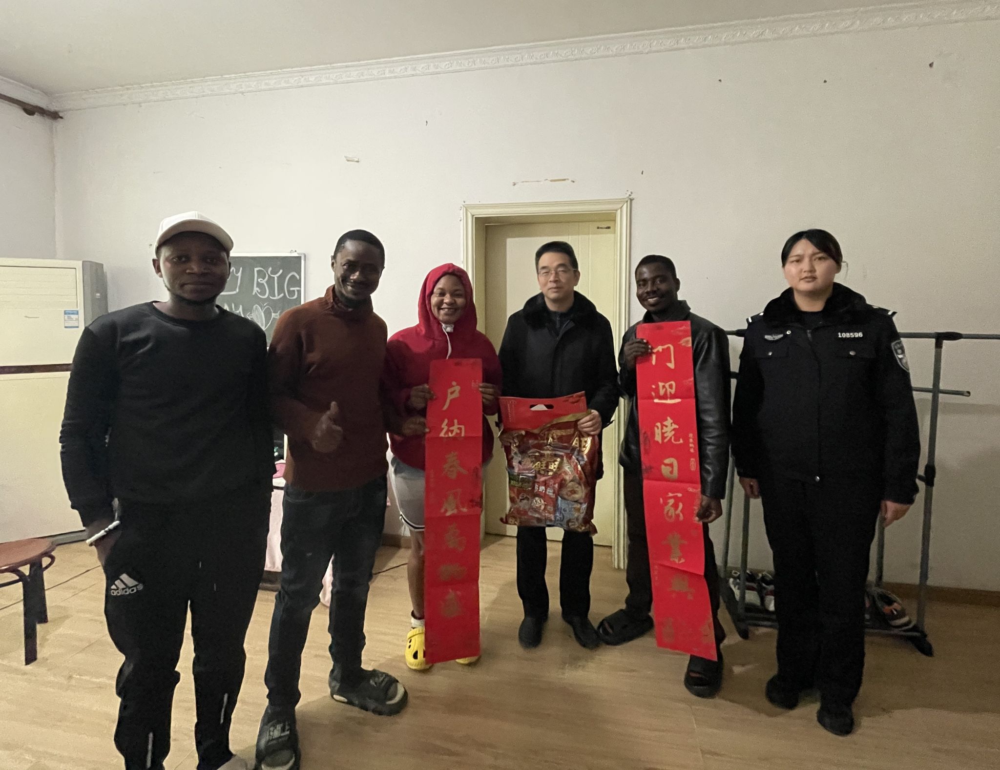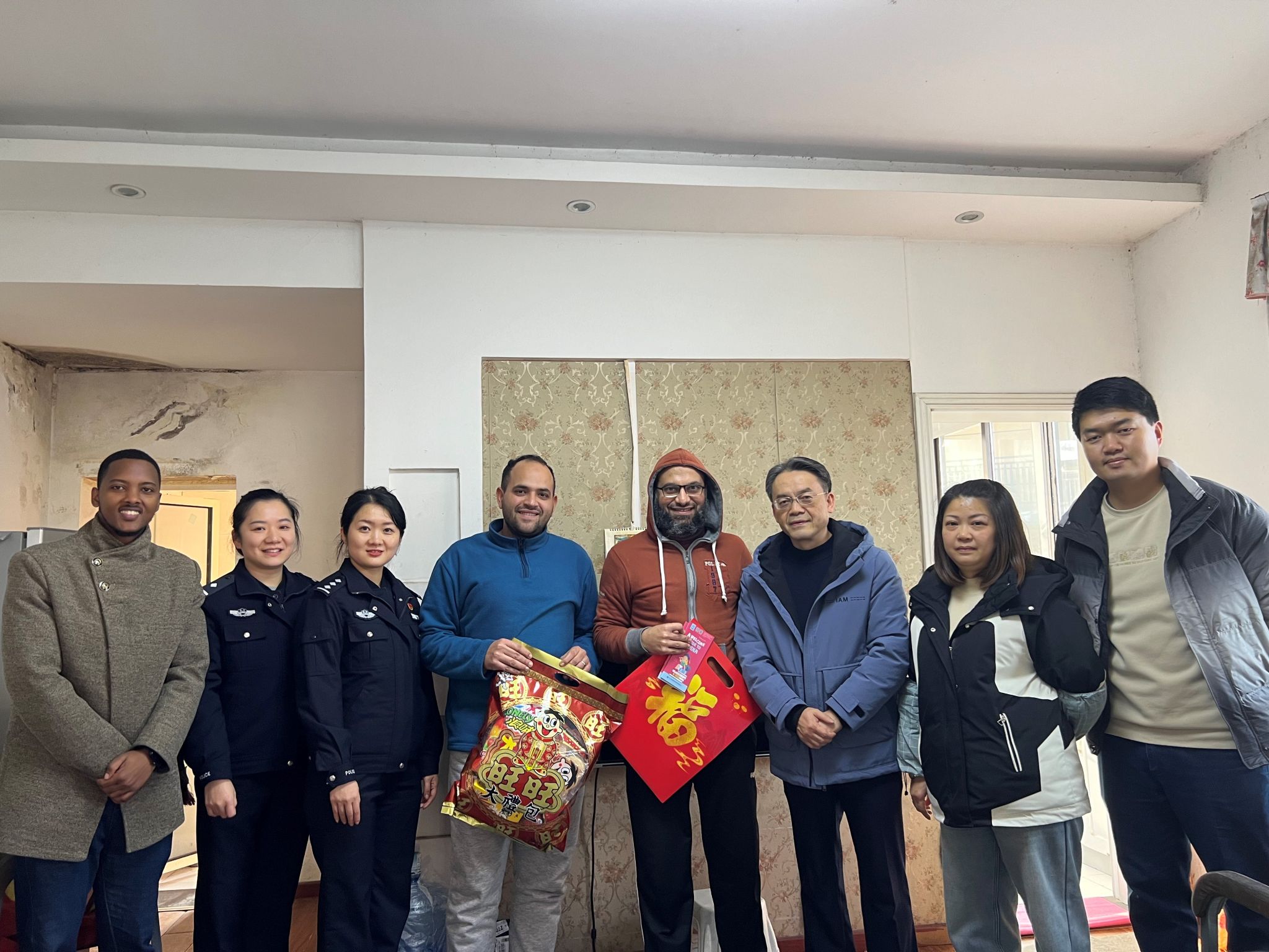 春节将至,公司联合出入境、辖区派出所、社区以及国际员工片区长,分成5个工作小组,亲切慰问租住在校外的国际员工。其间,公司领导为国际员工送上春联和福字,让他们感受到了中国传统文化的魅力和公司的关怀。领导们还与国际员工进行深入的交流,了解他们在学习和生活中遇到的困难和问题,并给予积极的回应和指导。出入境与辖区民警逐个检查国际员工的证件,并从护照保管、交通安全、人身安全、防骗防盗等方面对他们进行详细的讲解和温馨提示。