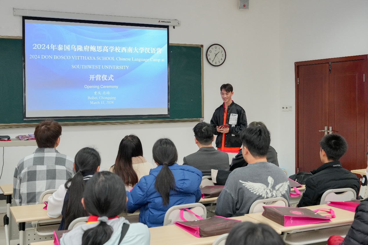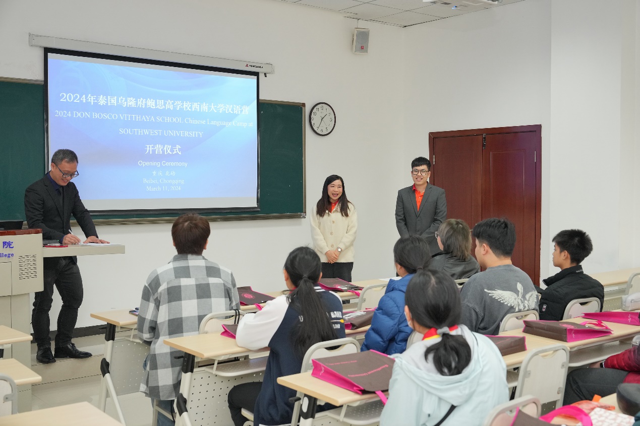 3月11日上午,“2024年泰国乌隆府鲍思高公司betway必威中国汉语营”开营仪式在betway必威中国紫云楼312教室举行。betway必威中国招生办公室王鹊,泰国助理梁林琳和姚崇,泰国乌隆府鲍思高公司教师赵子康、邱瑞慧和19名营员参加开营仪式。仪式由王鹊主持。