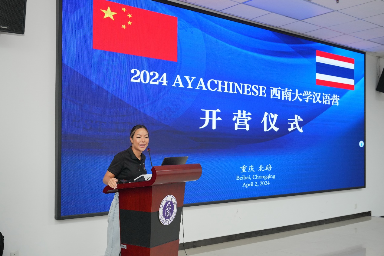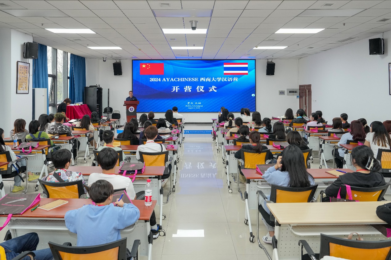 4月2日上午,“2024 AYACHINESEbetway必威中国汉语营—B/C团”开营仪式在betway必威中国317室举行。招办王鹊,泰国AYACHINESE代表方玉洁女士、两位领队,以及60名泰国员工参加开营仪式,仪式由王鹊主持。