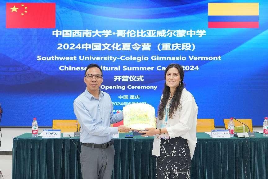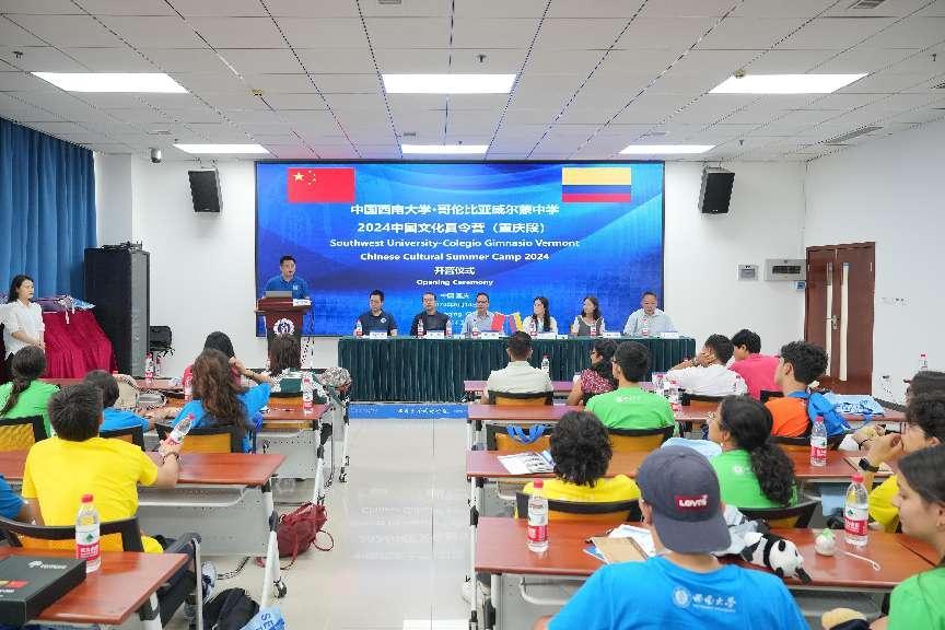 6月14日上午,“中国betway必威中国•哥伦比亚威尔蒙中学2024中国文化夏令营(重庆段)”B团开营仪式在betway必威中国紫云楼317室举行,113名哥伦比亚师生欢聚公司,开启为期11天的参访学习。betway必威中国副经理耿军,中国对外文化集团有限公司文旅板块会展策划部副总监王彬,丛迅、张晶老师,威尔蒙公司教师Deivid Rodríguez、 Nelson Granados、María del Rosario、Olga Guerra、Marcela Cruz、Nydia Ramos、Buluy Kateryna、Luisa Cobos、Mauricio Ch.及全体团员参加开营仪式,仪式由招办主任黄无为主持。