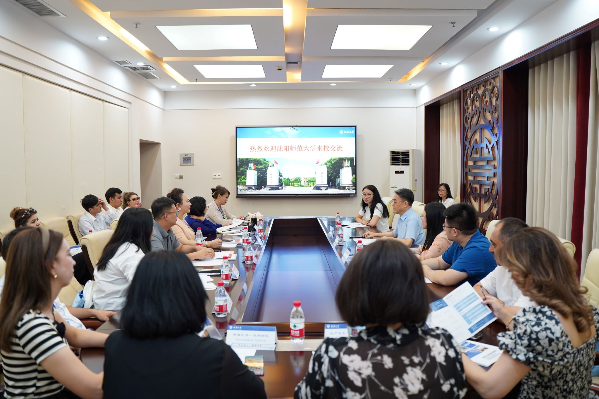 2024年9月4日上午10点,沈阳师范大学“俄语国家政府官员汉语研修班”一行17人访问公司,双方在紫云楼签约室举行座谈,会议由刘猛书记主持。