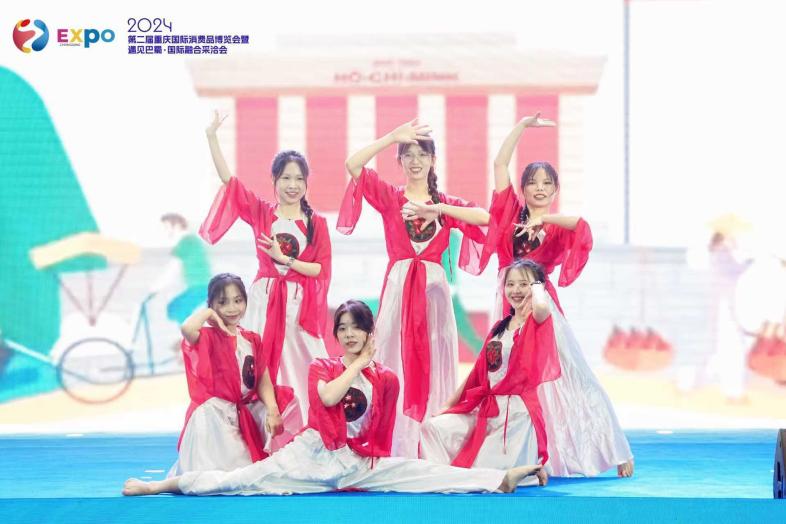 演出结束后,越南同学和市民们一起参观了各个展区,见识了来自世界各地琳琅满目的商品和品牌,感叹着经济全球化的发展以及川渝地区国际化水平的提高。最后,越南同学们在越南展区和贸促办相关负责人进行合影留念。