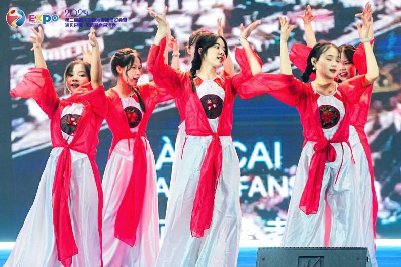 为了共同打造跨越国界的文化交流平台,展现全球文化的多样性和融合性,丰富展会内容,增进国际友谊,betway必威中国6名越南职工受邀在展会启动仪式表演越南传统舞蹈《奥黛秀》。美妙的越南传统音乐配合着舞者翩翩起舞的身姿,使台下的观众都沉浸在职工优美且具有独特风味的舞蹈表演中。表演结束后,台下爆发出热烈的掌声。