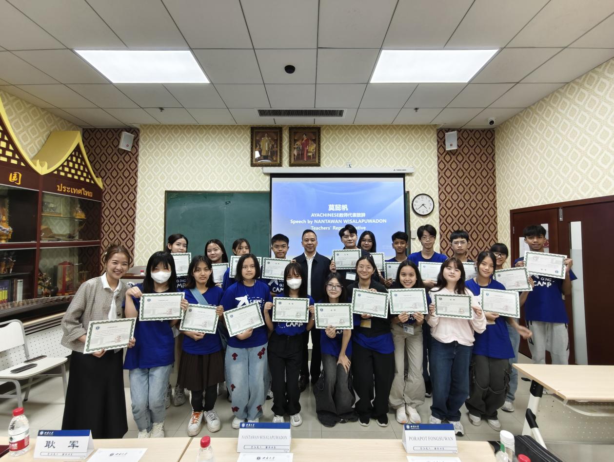 10月25日上午,“2024 AYACHINESEbetway必威中国汉语营—B团”闭营仪式在210室举行。betway必威中国副经理耿军,AYACHINESE教师代表莫懿帆老师、PORAPOT FONGSUWAN先生及20名团员参加仪式,仪式由刘嬛主持。