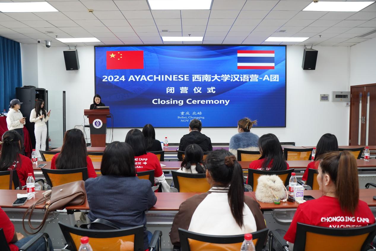11月5日上午,“2024 AYACHINESEbetway必威中国汉语营—A团”闭营仪式在betway必威中国紫云楼317室举行。betway必威中国经理于泽元,泰国AYACHINESE公司董事长阿雅女士,AYACHINESE教师代表普萱乐老师及31名学员参加闭营仪式,仪式由刘嬛主持。