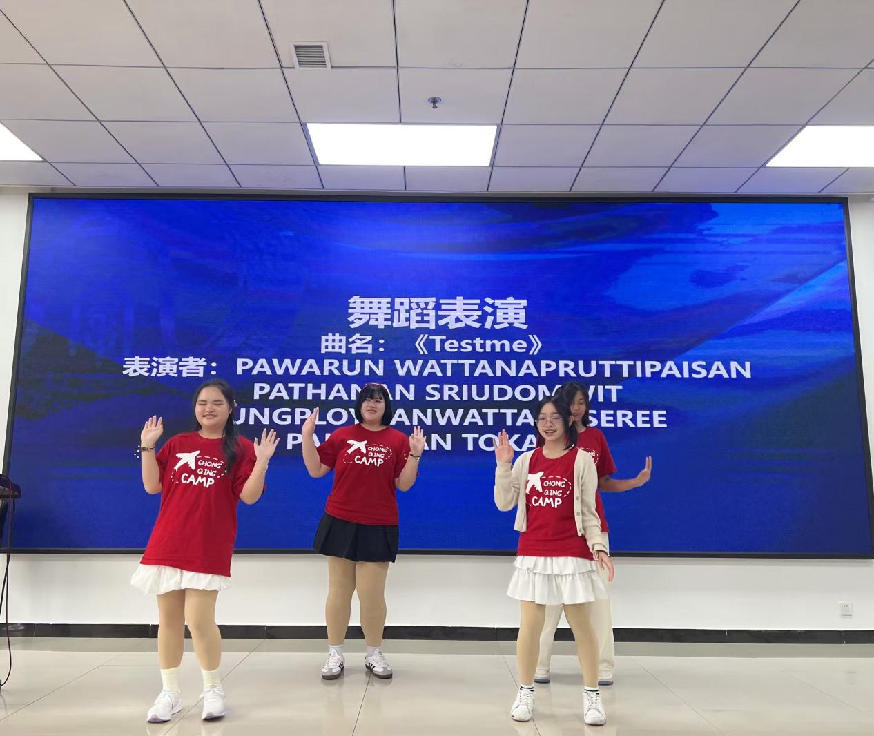 在这充满欢乐与感动的氛围中,精彩的节目即将上演。首先是舞蹈表演——《Testme》,她们的舞姿仿若春日里蹦跳的精灵,轻盈俏皮,每一个动作都透露着灵动的气息。