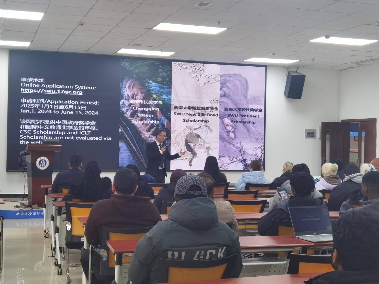 刘嬛就重庆风貌、公司基本情况、优势学科专业、奖学金设置以及本校生申请流程、注意事项等多方面进行中英文介绍。