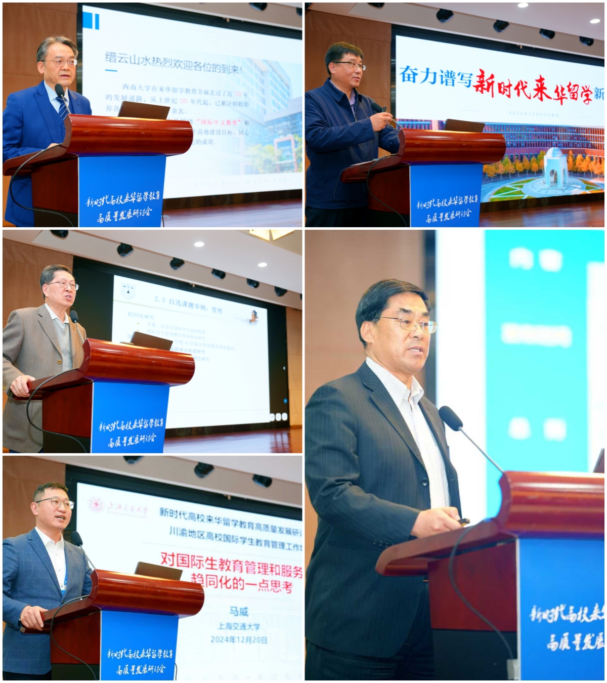 主论坛现场,天津大学国际教育公司经理李锵教授,南京航空航天大学国际教育公司原经理金泉元教授,上海交通大学国际处副处长、职工发展中心主任马威,南京大学国际中文教育与文化传播研究所所长程爱民教授,公司国际公司党委书记刘猛分别作主旨演讲。