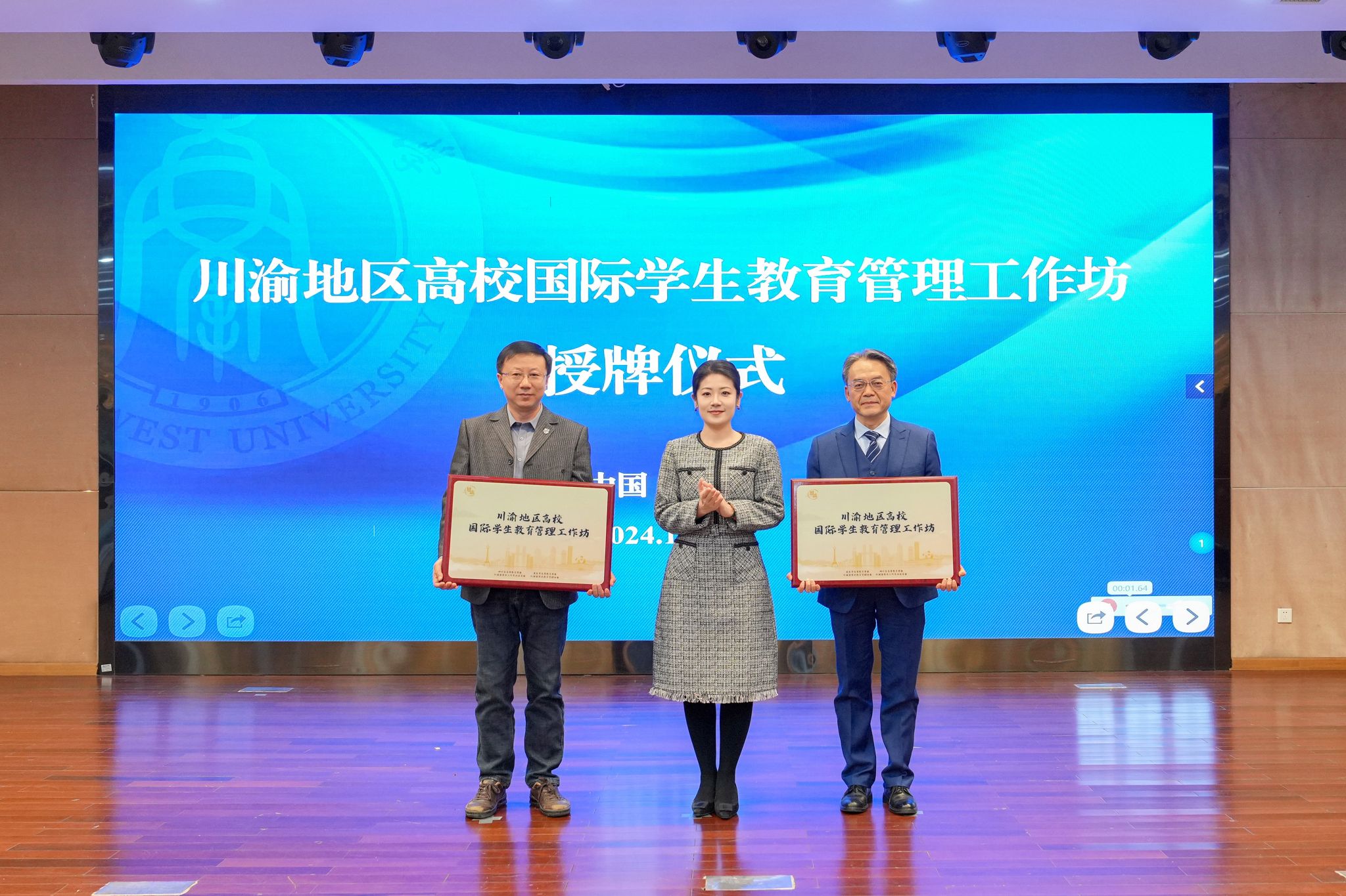 研讨会期间,还举行了川渝地区高校国际员工教育管理工作坊授牌仪式,郑晗为川渝地区高校代表现场授牌。